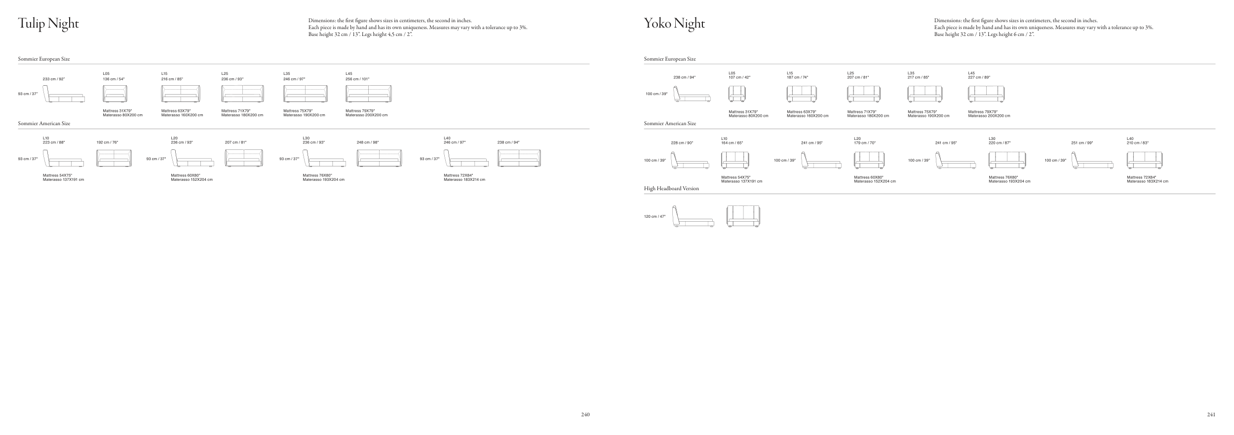 Dimensions: the frst fgure shows sizes in centimeters, the second in inches.