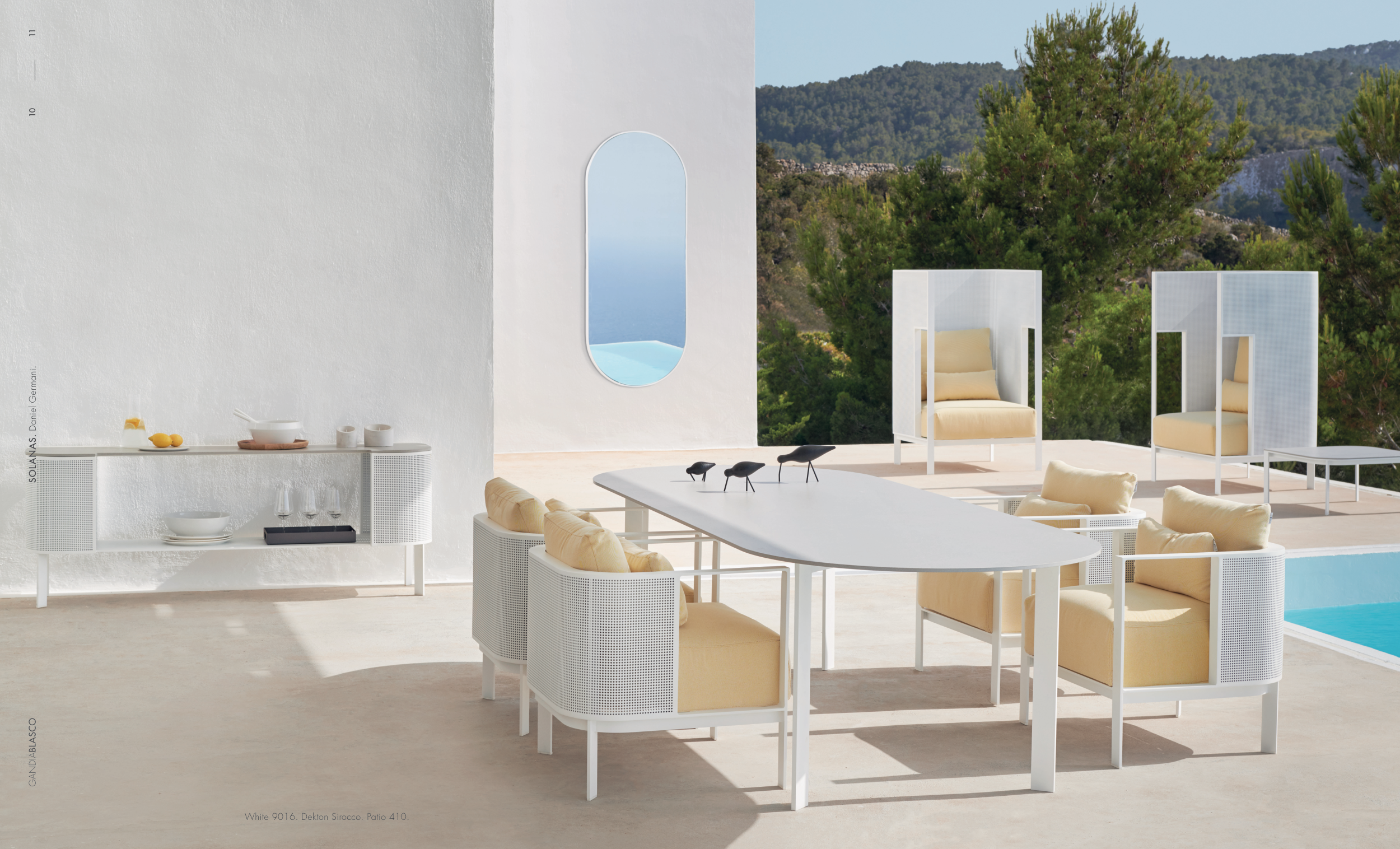 White 9016. Dekton Sirocco. Patio 410.