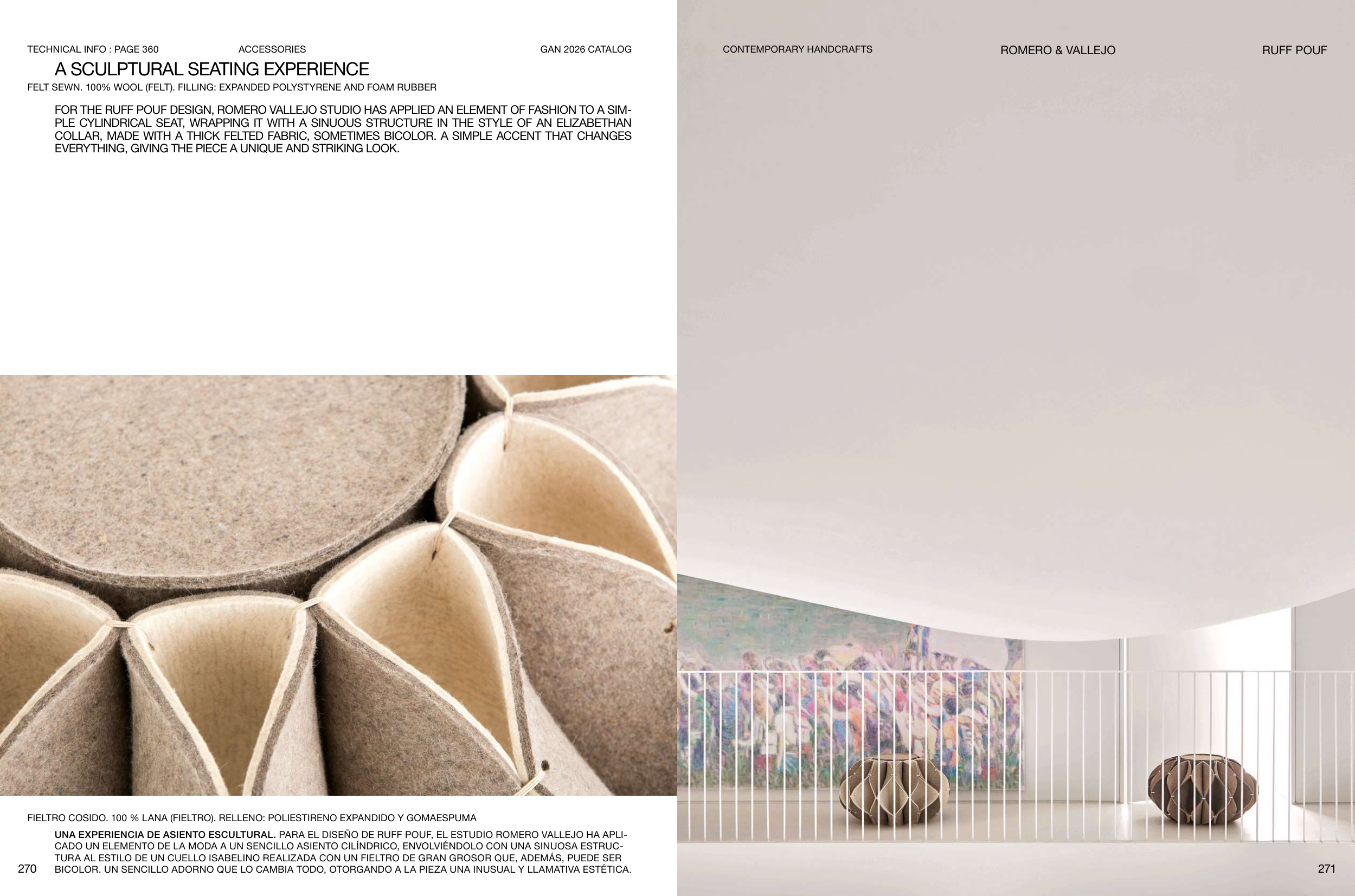 FOR THE RUFF POUF DESIGN, ROMERO VALLEJO STUDIO HAS APPLIED AN ELEMENT OF FASHION TO A SIM-