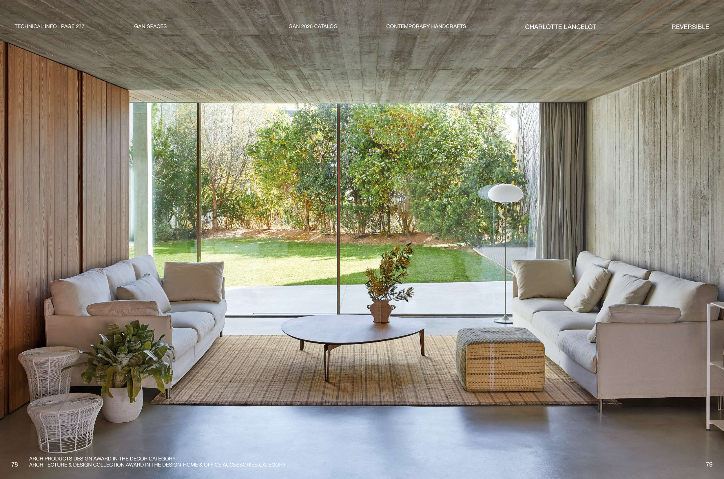 78 GAN 2026 CATALOG GAN SPACES TECHNICAL INFO : PAGE 277 ARCHIPRODUCTS DESIGN AWARD IN THE DECOR CATEGORY ARCHITECTURE & DESIGN COLLECTION AWARD IN THE DESIGN-HOME & OFFICE ACCESSORIES CATEGORY 79 REVERSIBLE CHARLOTTE LANCELOT CONTEMPORARY HANDCRAFTS