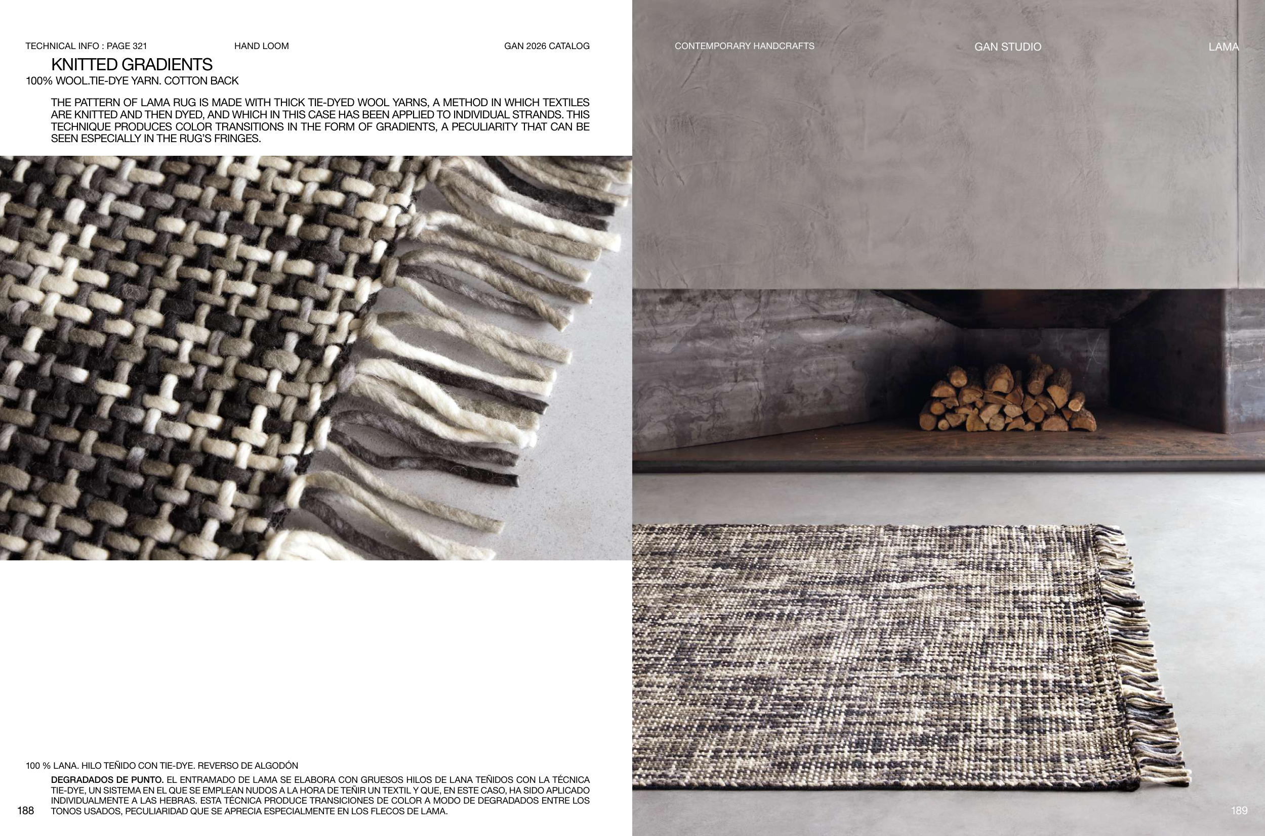 THE PATTERN OF LAMA RUG IS MADE WITH THICK TIE-DYED WOOL YARNS, A METHOD IN WHICH TEXTILES