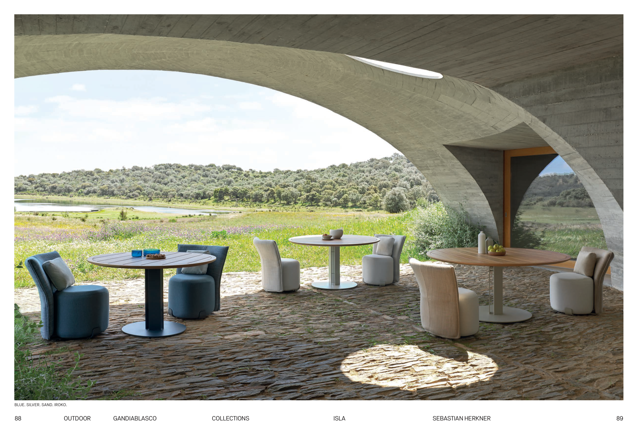 BLUE. SILVER. SAND. IROKO.