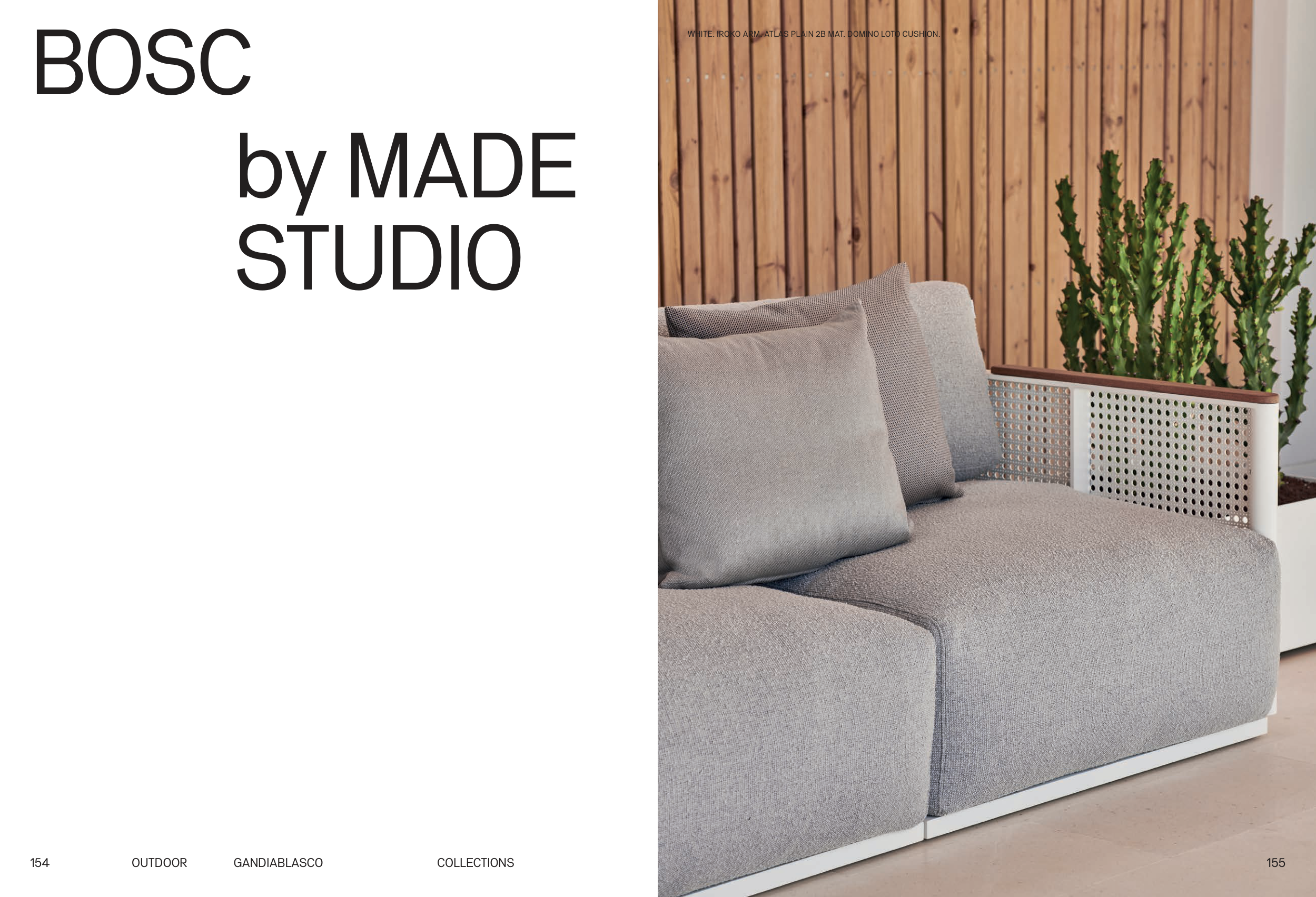 WHITE. IROKO ARM. ATLAS PLAIN 2B MAT. DOMINO LOTO CUSHION.