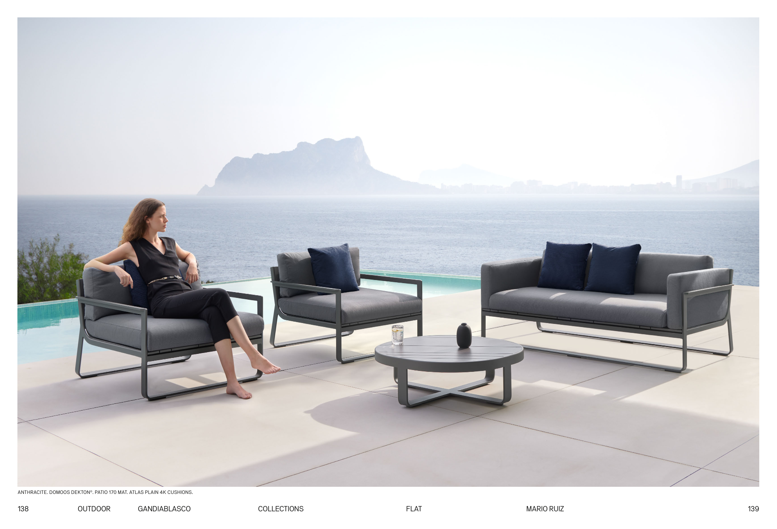 ANTHRACITE. DOMOOS DEKTON®. PATIO 170 MAT. ATLAS PLAIN 4K CUSHIONS.