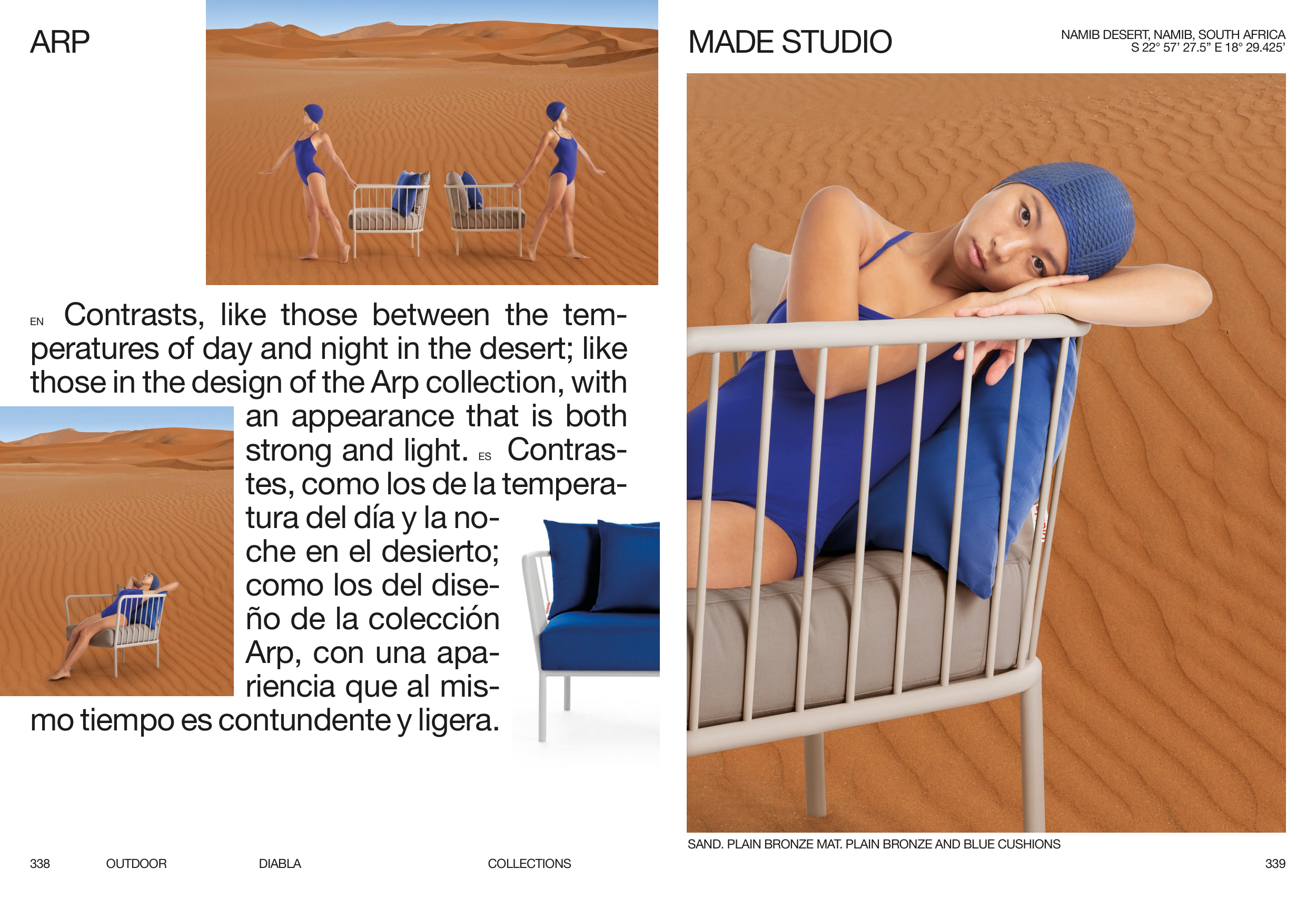 SAND. PLAIN BRONZE MAT. PLAIN BRONZE AND BLUE CUSHIONS