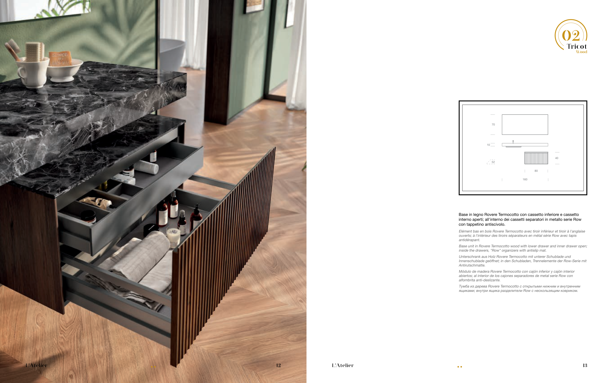 interno aperti; all'interno dei cassetti separatori in metallo serie Row