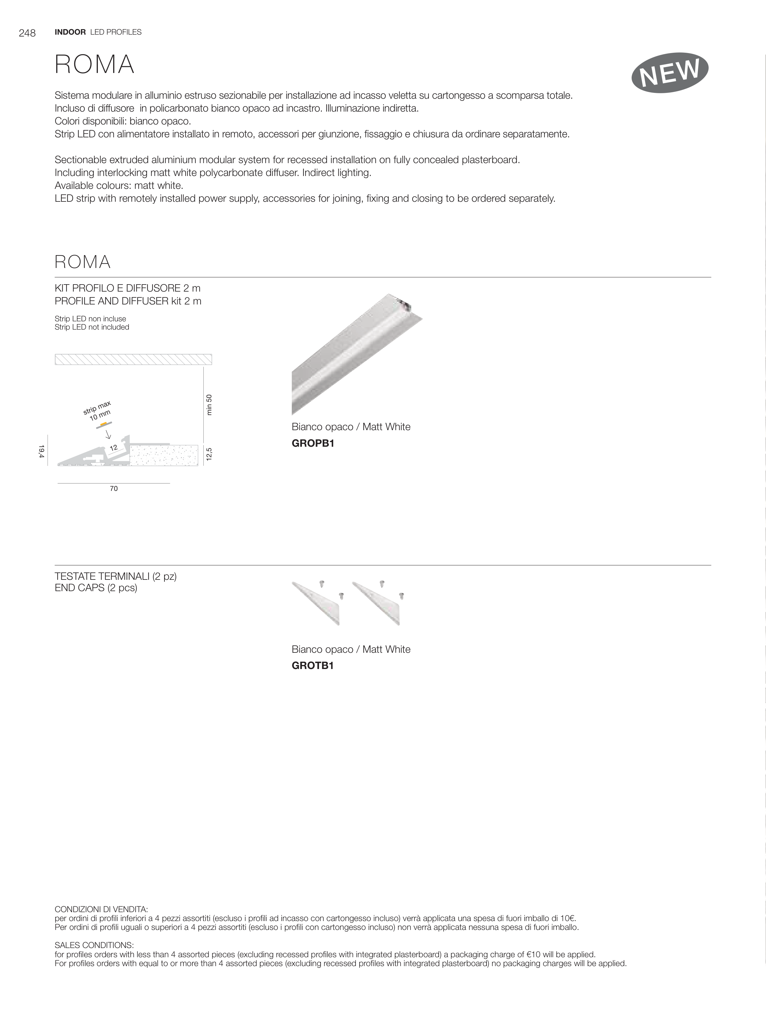 for profiles orders with less than 4 assorted pieces (excluding recessed profiles with integrated plasterboard) a packaging charge of €10 will be applied.