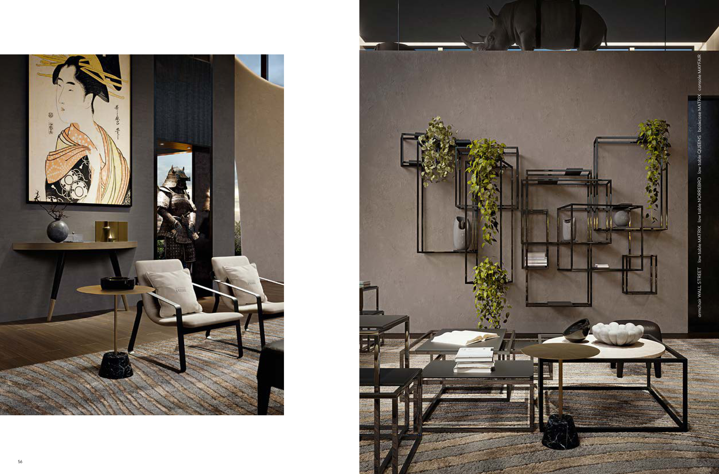 armchair WALL STREET low table MATRIX low table NORREBRO low table QUEENS bookcase MATRIX console MAYFAIR