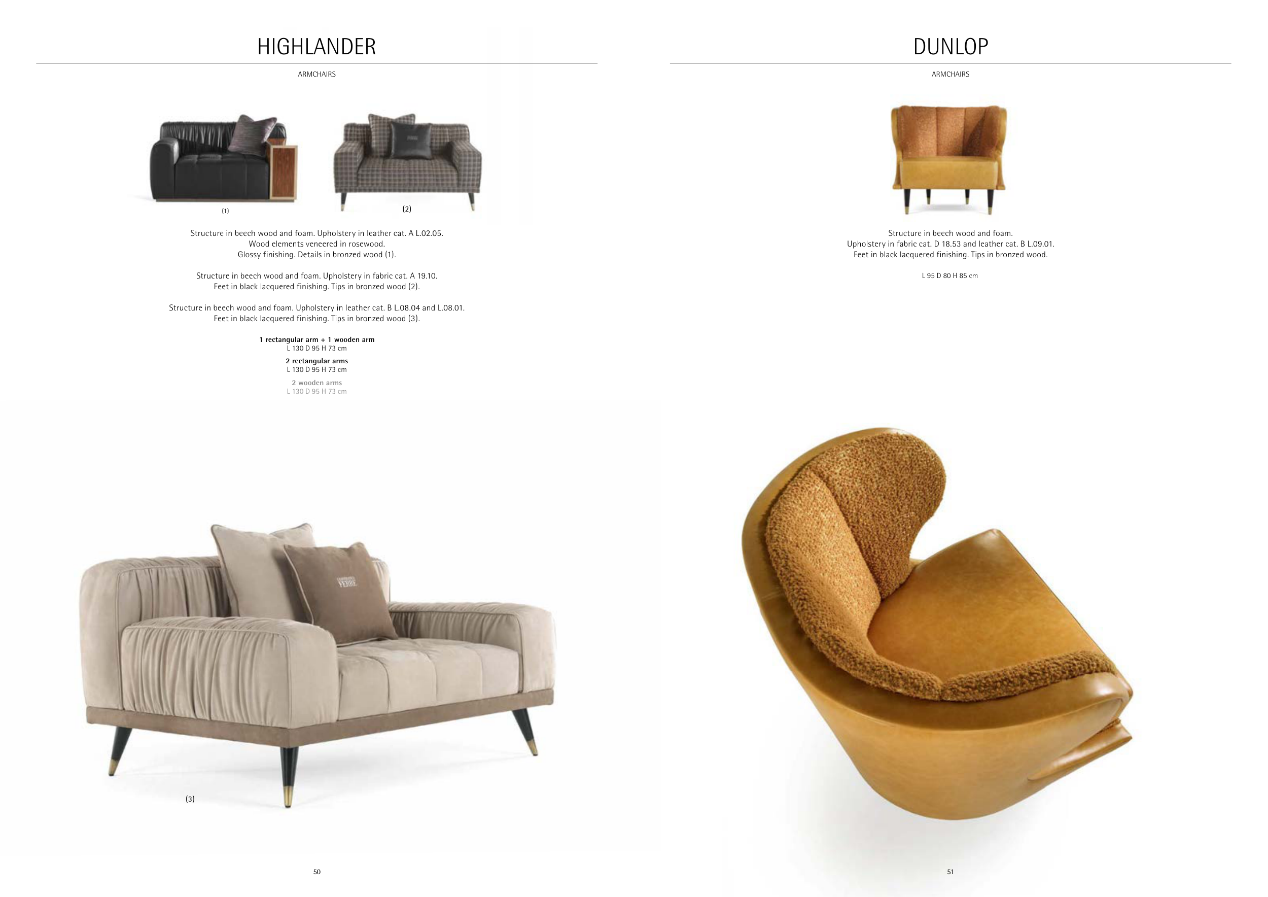 Structure in beech wood and foam. Upholstery in leather cat. B L.08.04 and L.08.01.