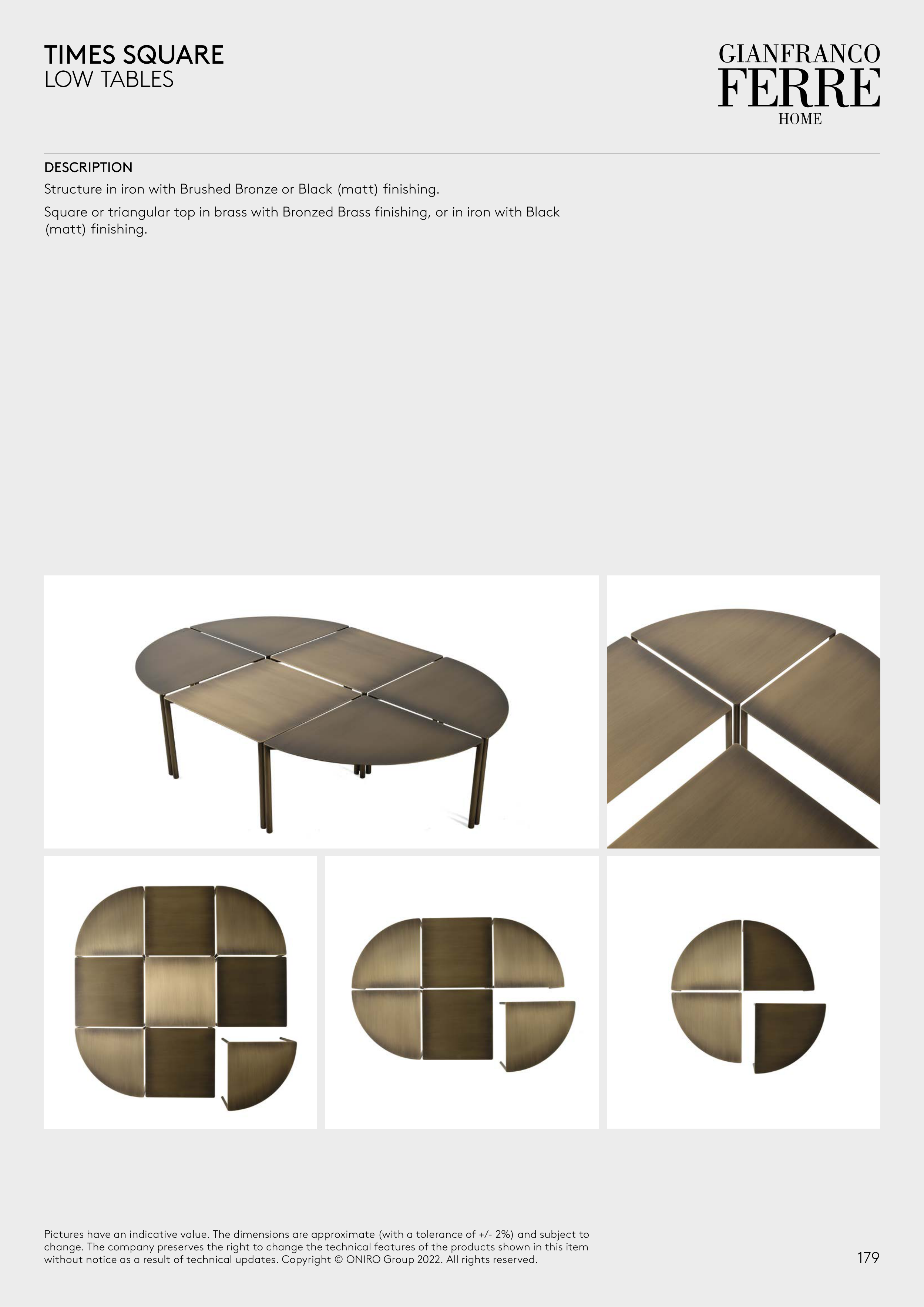 Square or triangular top in brass with Bronzed Brass finishing, or in iron with Black