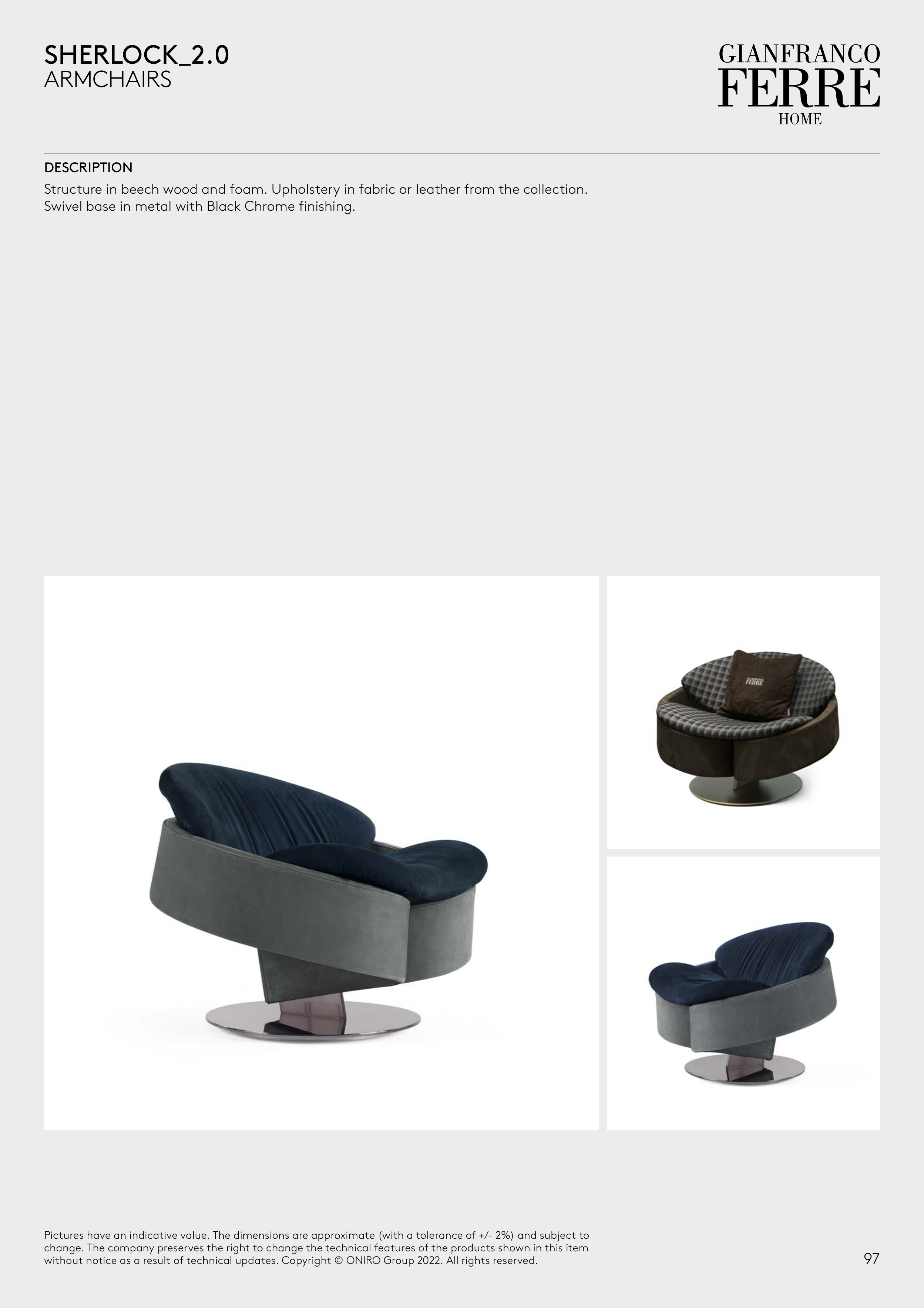 Structure in beech wood and foam. Upholstery in fabric or leather from the collection.