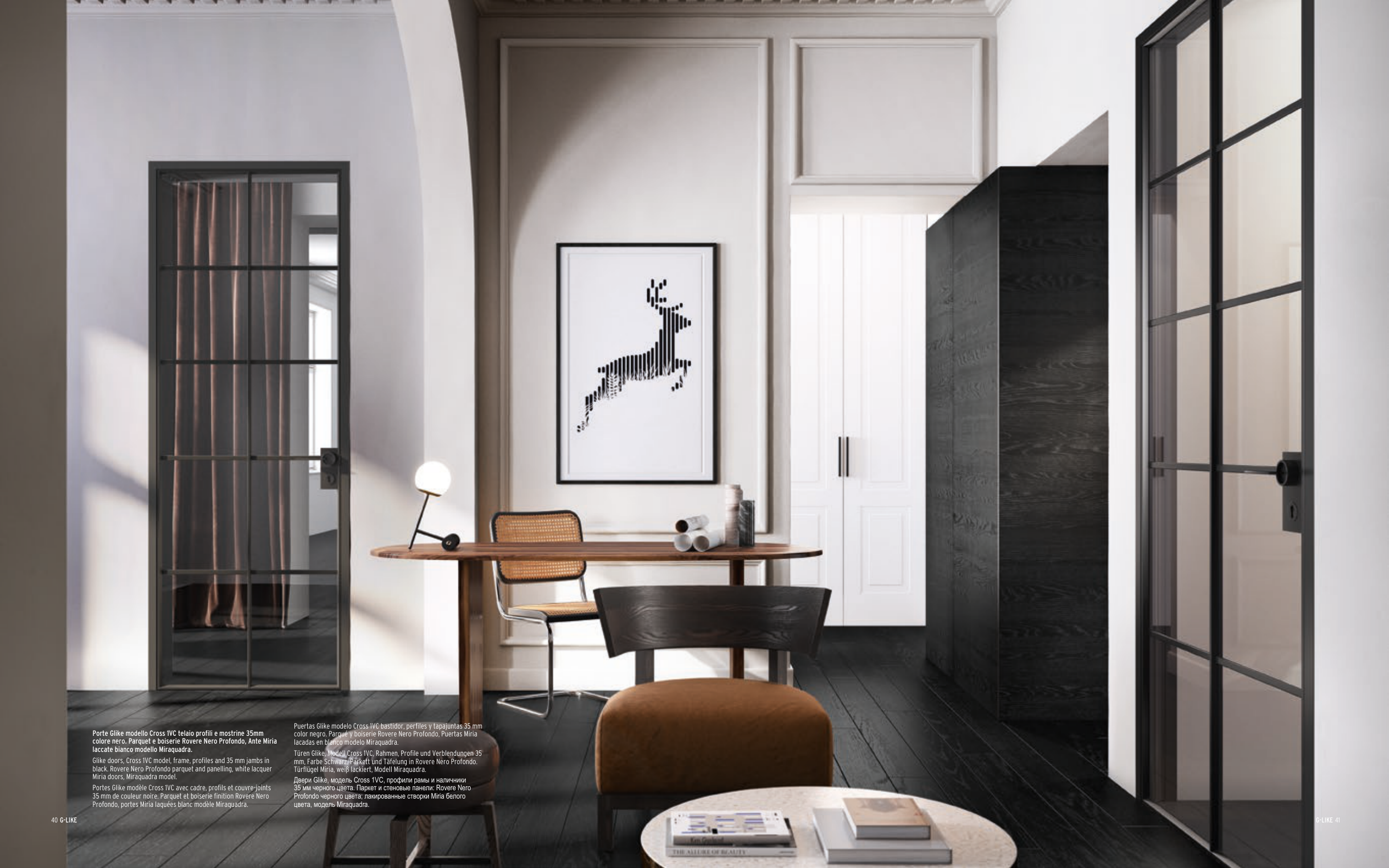 black. Rovere Nero Profondo parquet and panelling, white lacquer