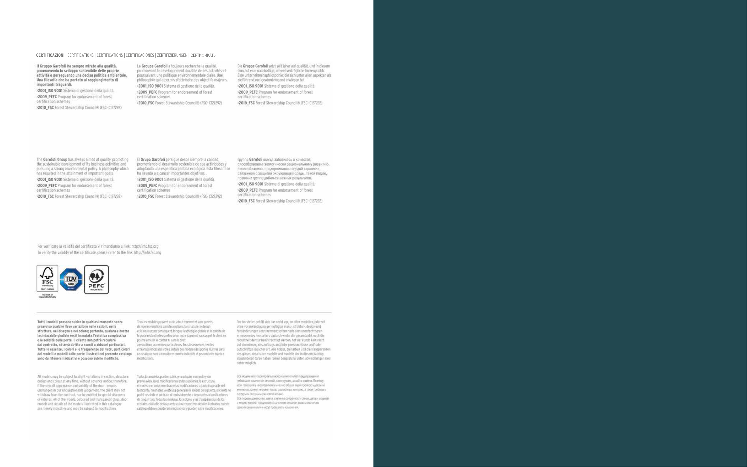 CERTIFICAZIONI | CERTIFICATIONS | CERTIFICATIONS | CERTIFICACIONES | ZERTIFIZIERUNGEN | СЕРТИФИКАТЫ