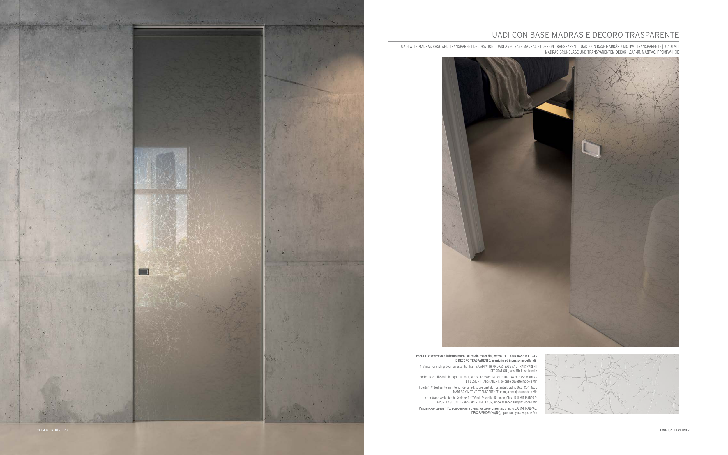In der Wand verlaufende Schiebetür 1TV mit Essential-Rahmen, Glas UADI MIT MADRAS-