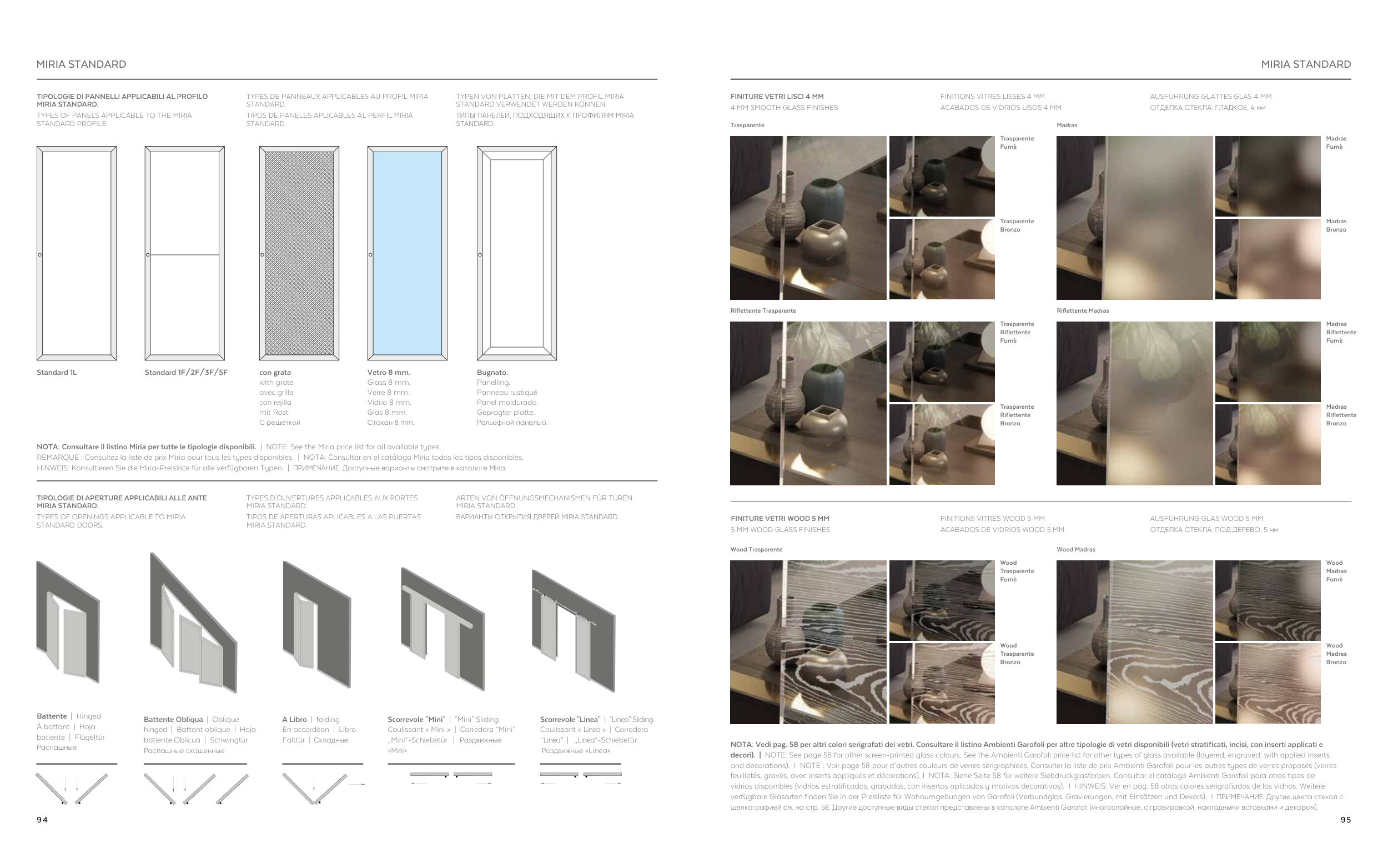 NOTA: Vedi pag. 58 per altri colori serigrafati dei vetri. Consultare il listino Ambienti Garofoli per altre tipologie di vetri disponibili (vetri stratificati, incisi, con inserti applicati e