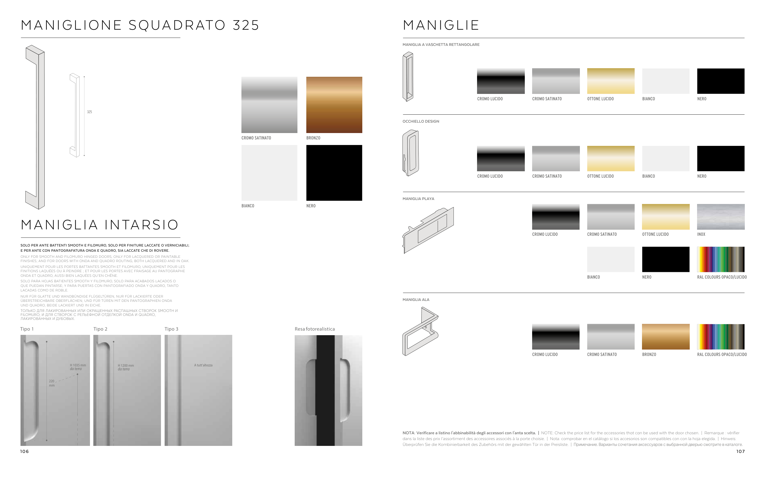 NOTA: Verificare a listino l'abbinabilità degli accessori con l'anta scelta. | NOTE: Check the price list for the accessories that can be used with the door chosen. | Remarque : vérifier