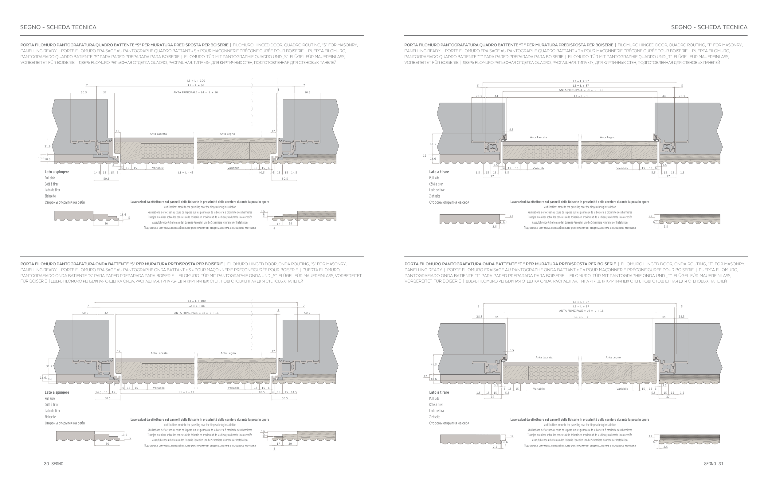 PANTOGRAFIADO QUADRO BATIENTE “S” PARA PARED PREPARADA PARA BOISERIE | FILOMURO-TÜR MIT PANTOGRAPHIE QUADRO UND „S“-FLÜGEL FÜR MAUEREINLASS,
