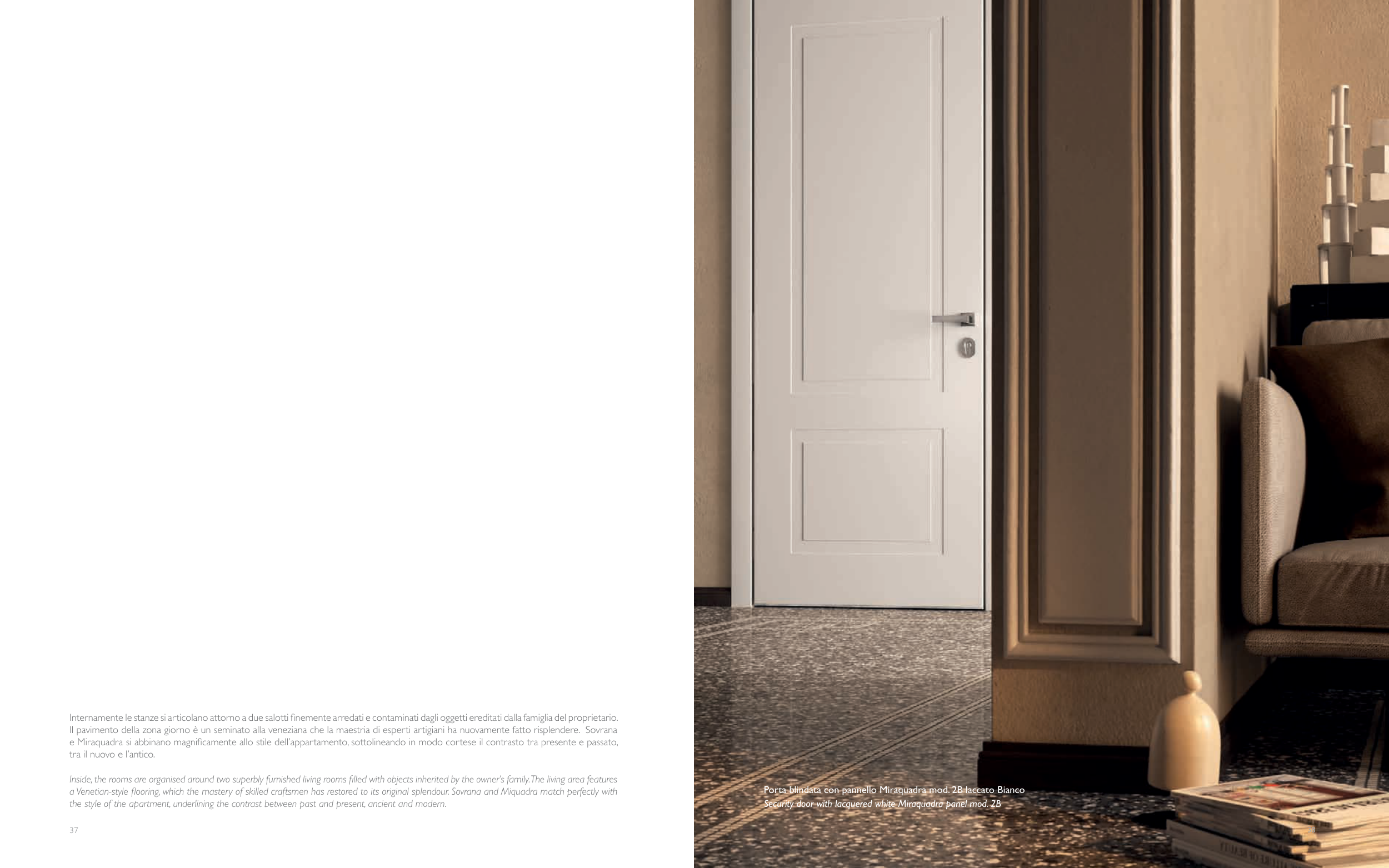 a Venetian-style flooring, which the mastery of skilled craftsmen has restored to its original splendour. Sovrana and Miquadra match perfectly with