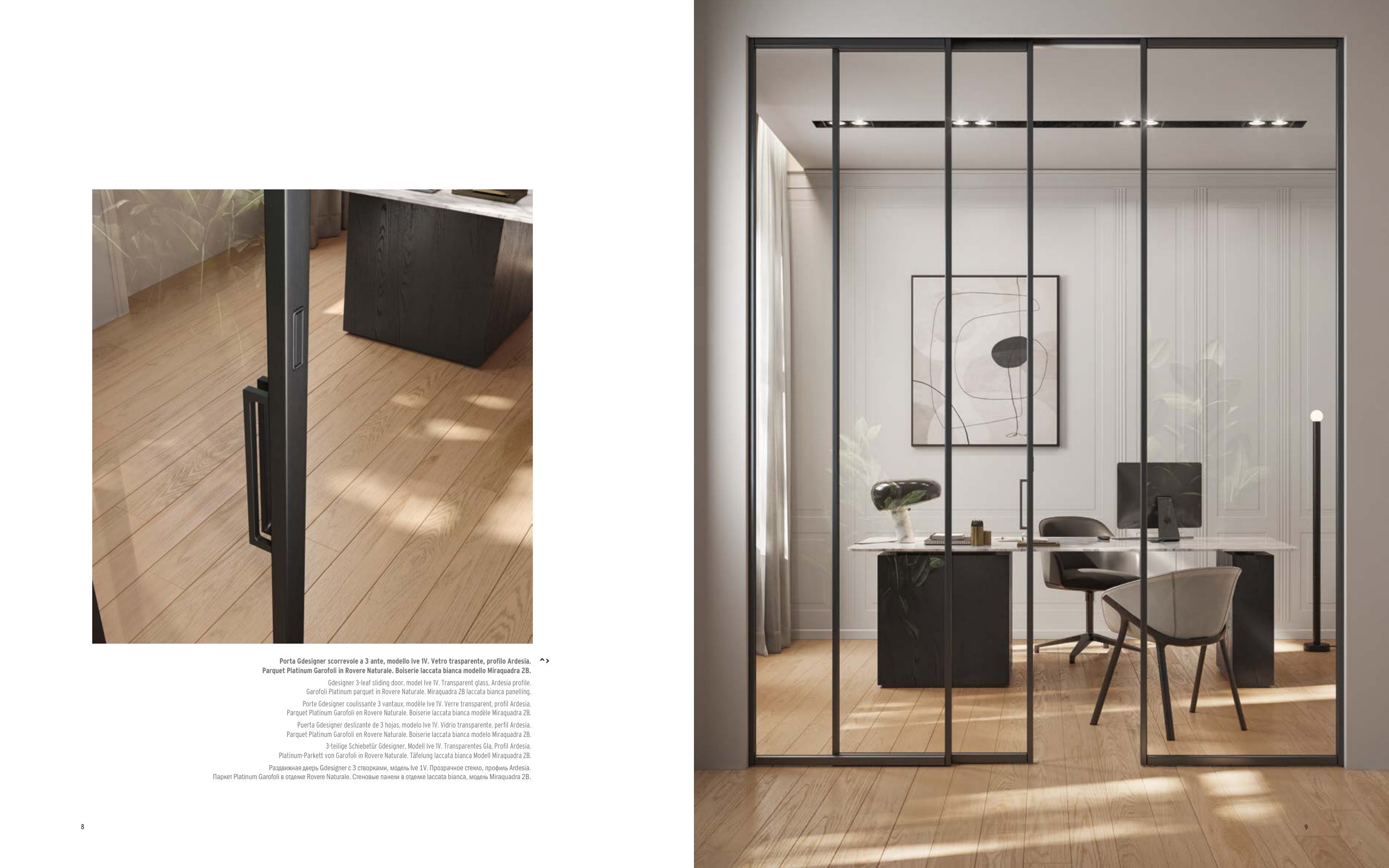 Garofoli Platinum parquet in Rovere Naturale. Miraquadra 2B laccata bianca panelling.