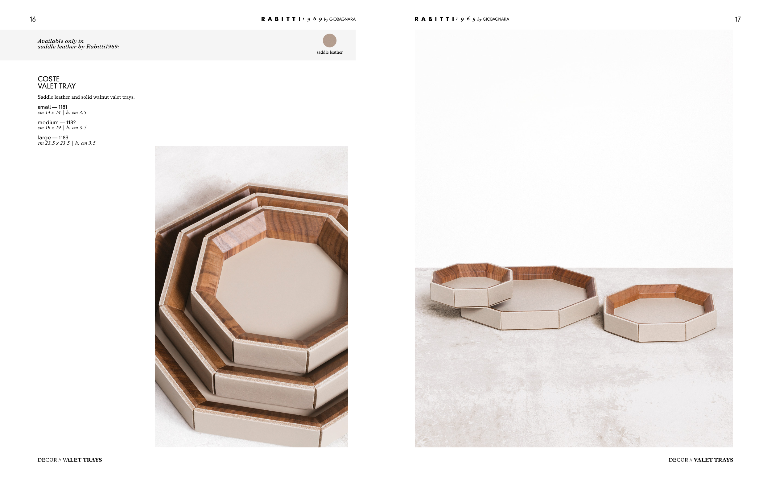 Saddle leather and solid walnut valet trays.