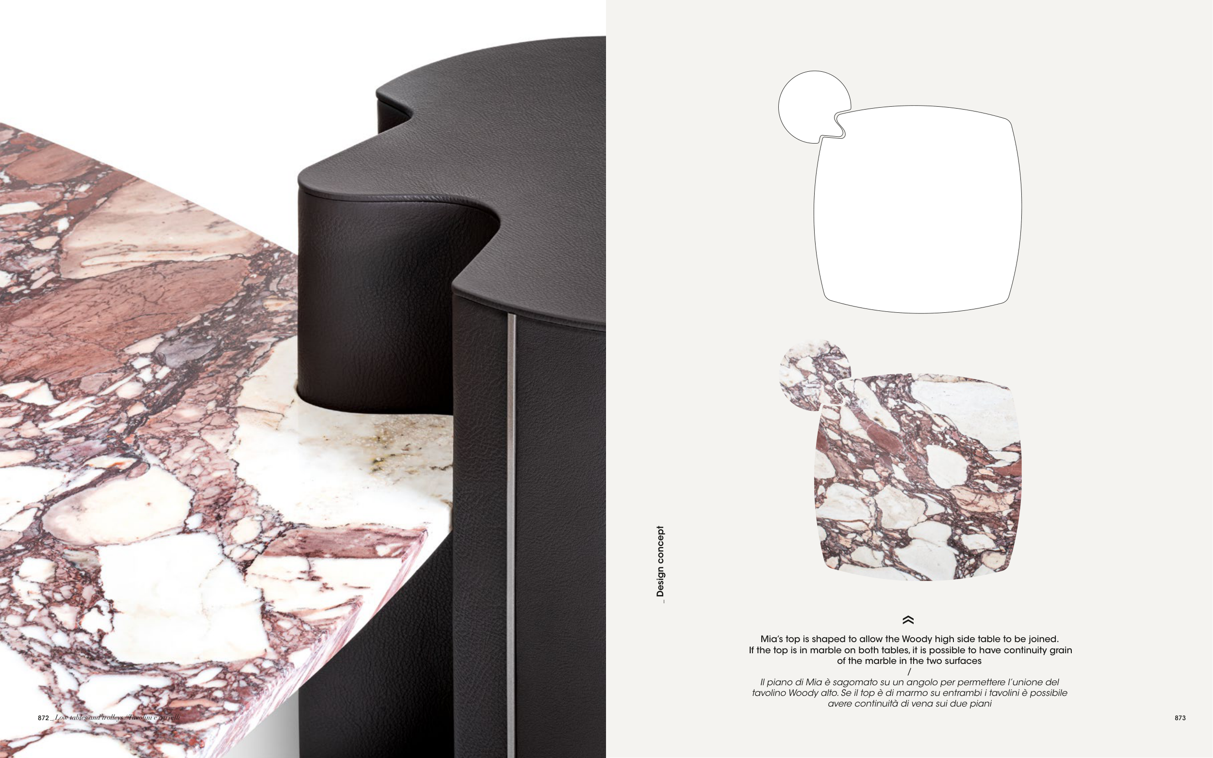 Mia’s top is shaped to allow the Woody high side table to be joined.
