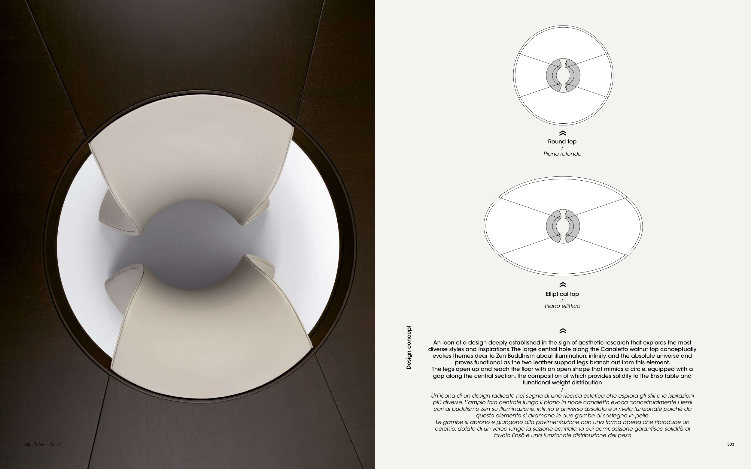 diverse styles and inspirations. The large central hole along the Canaletto walnut top conceptually