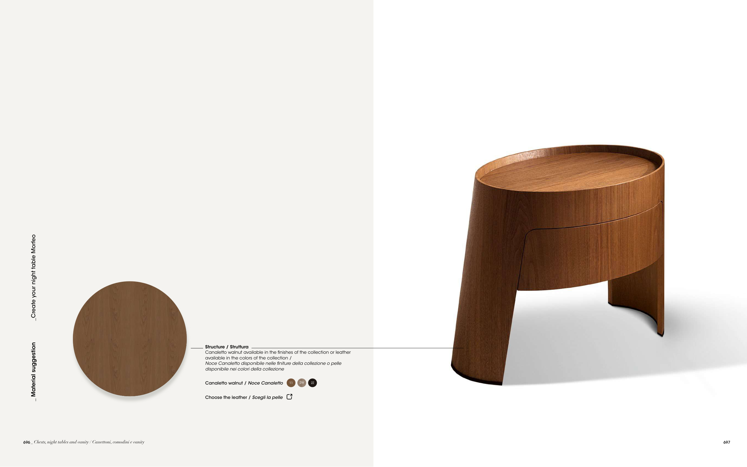 Canaletto walnut available in the finishes of the collection or leather