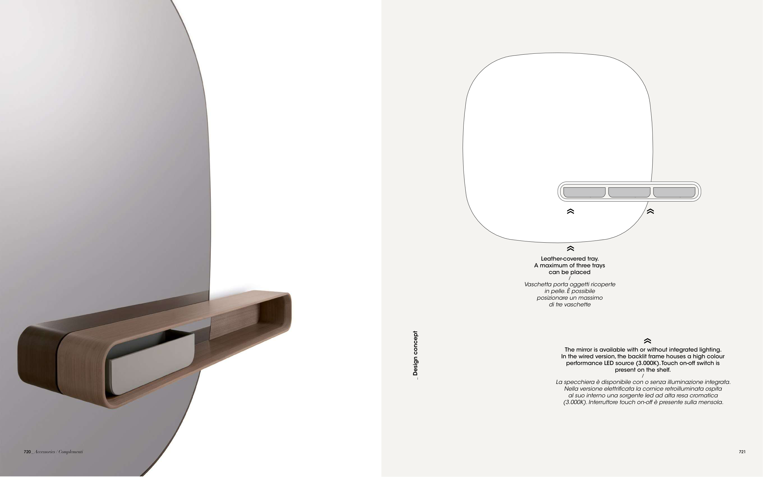 La specchiera è disponibile con o senza illuminazione integrata.