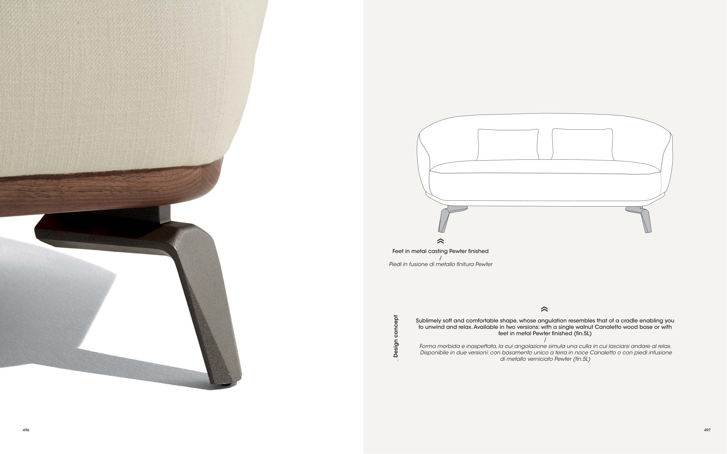 to unwind and relax. Available in two versions: with a single walnut Canaletto wood base or with