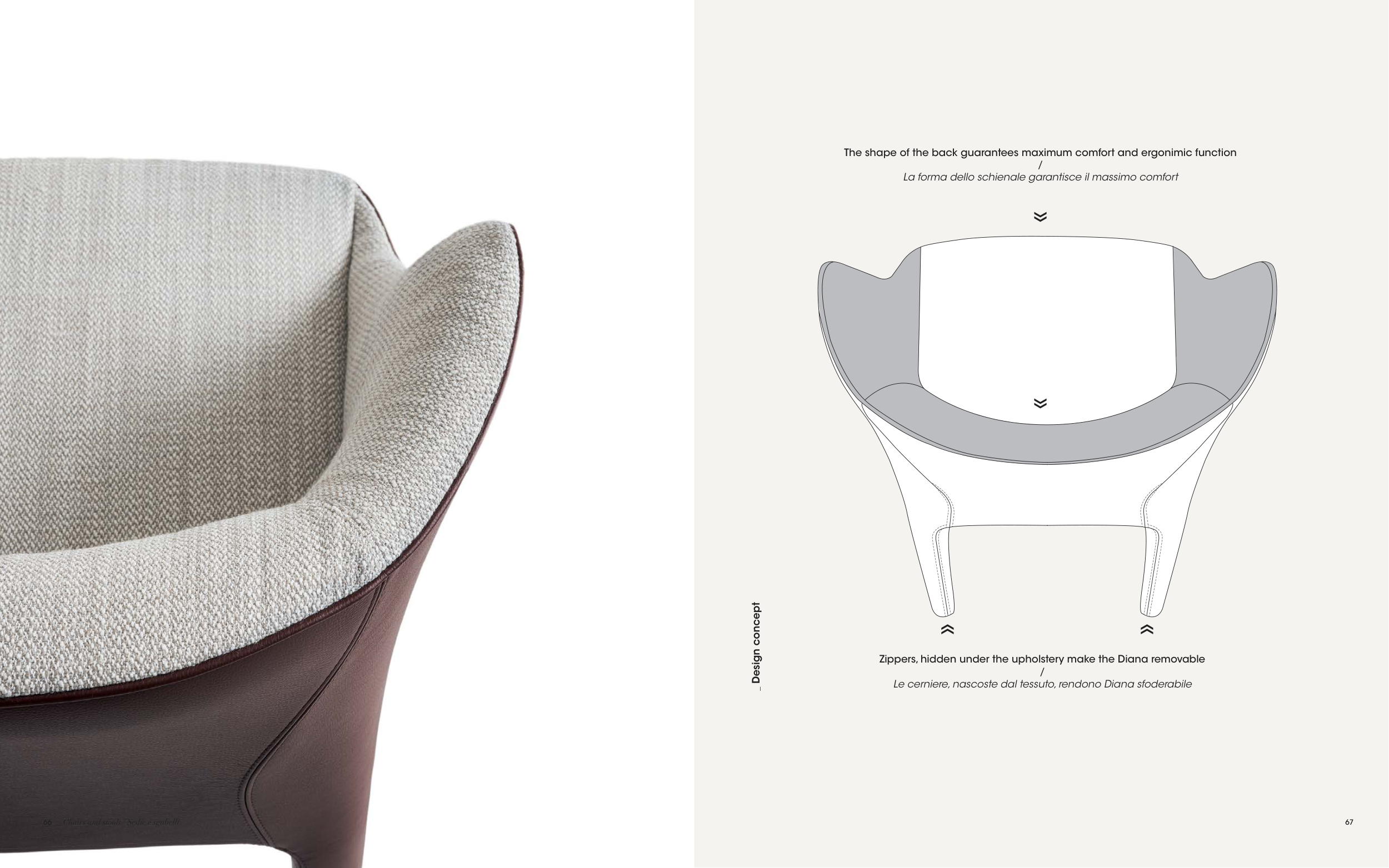 Le cerniere, nascoste dal tessuto, rendono Diana sfoderabile