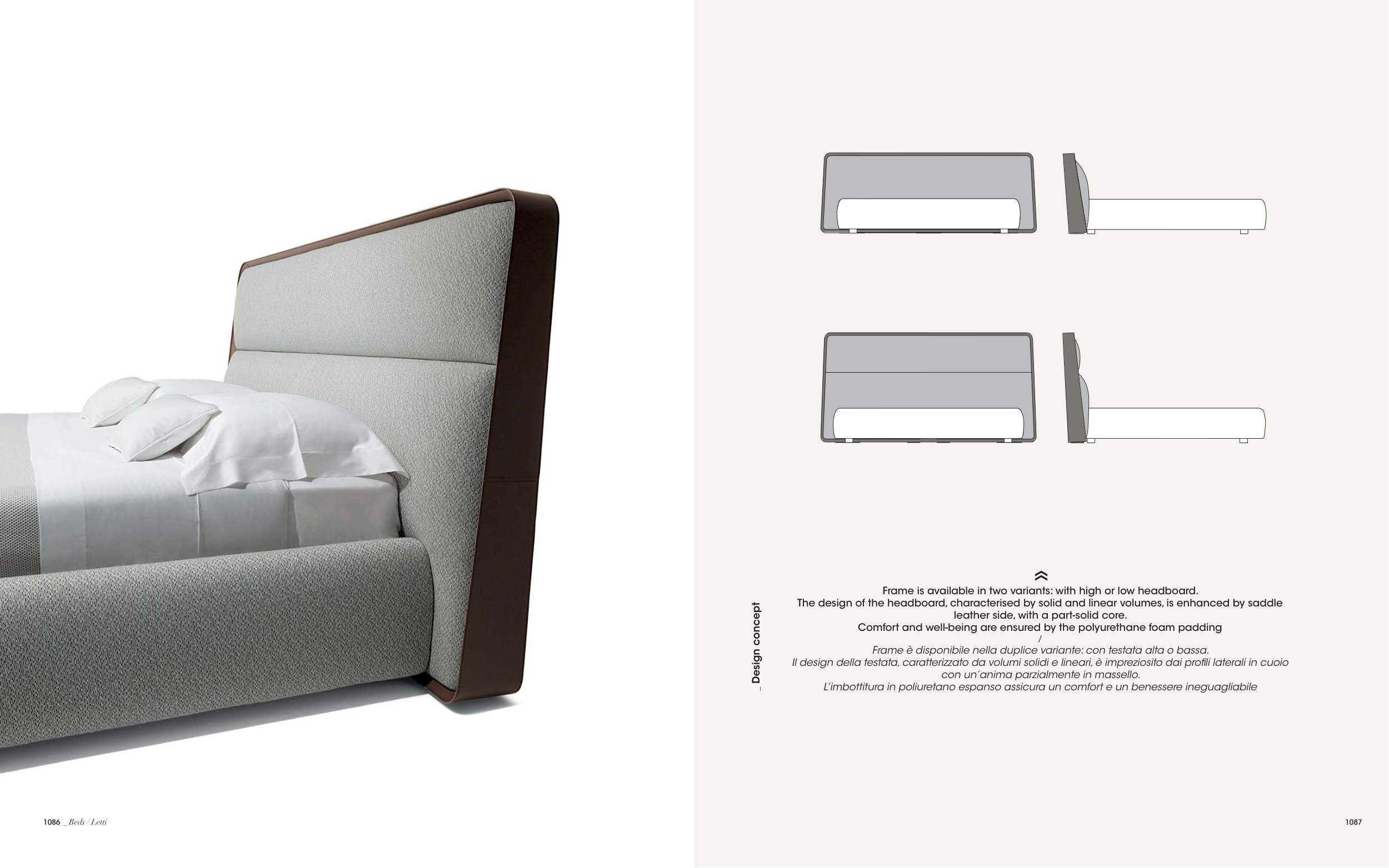 Frame è disponibile nella duplice variante: con testata alta o bassa.