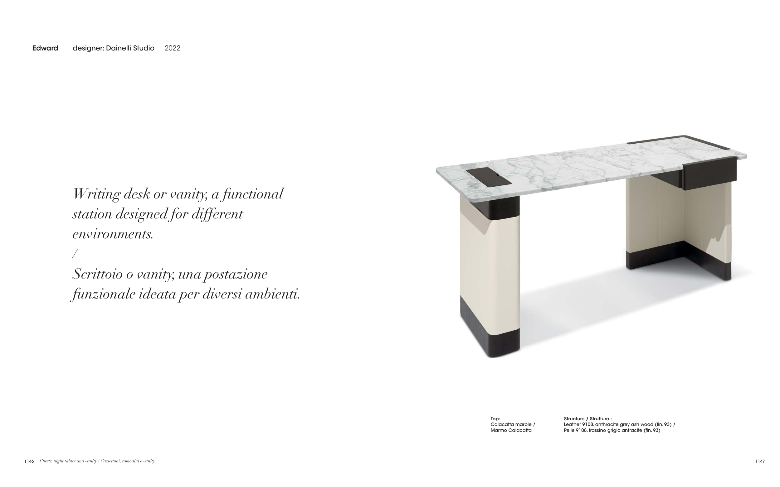 Calacatta marble / Leather 9108, anthracite grey ash wood (fin. 93) /