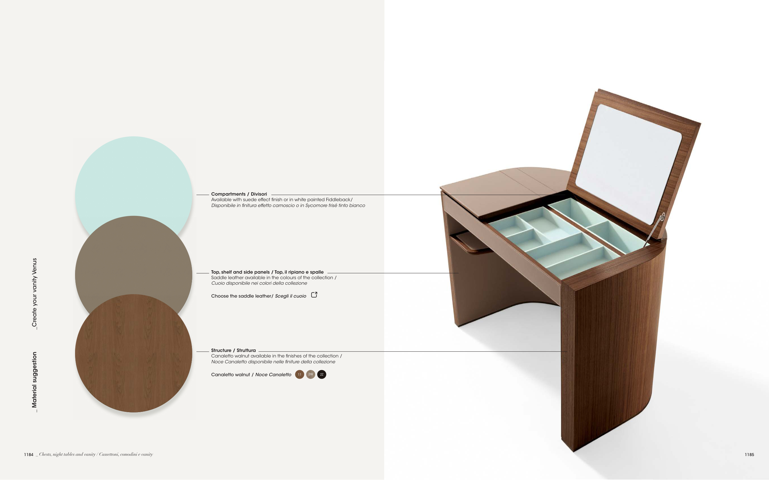 Canaletto walnut available in the finishes of the collection /