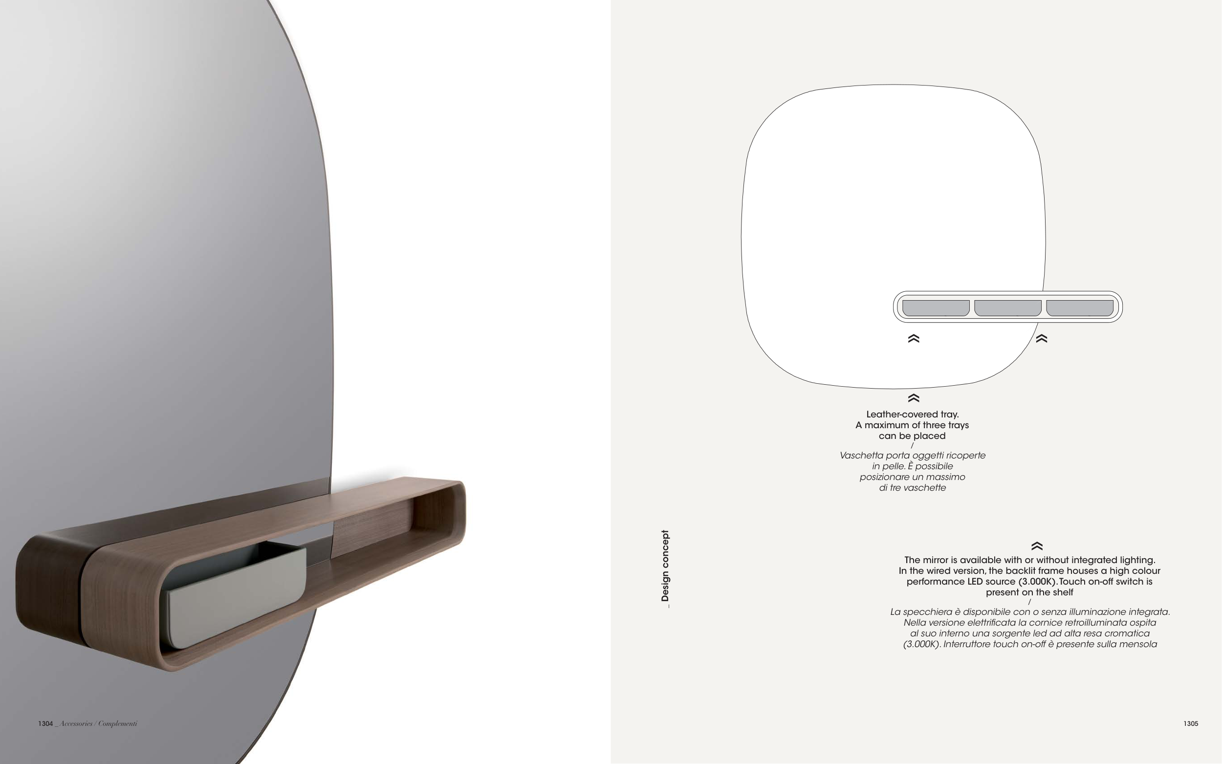 La specchiera è disponibile con o senza illuminazione integrata.