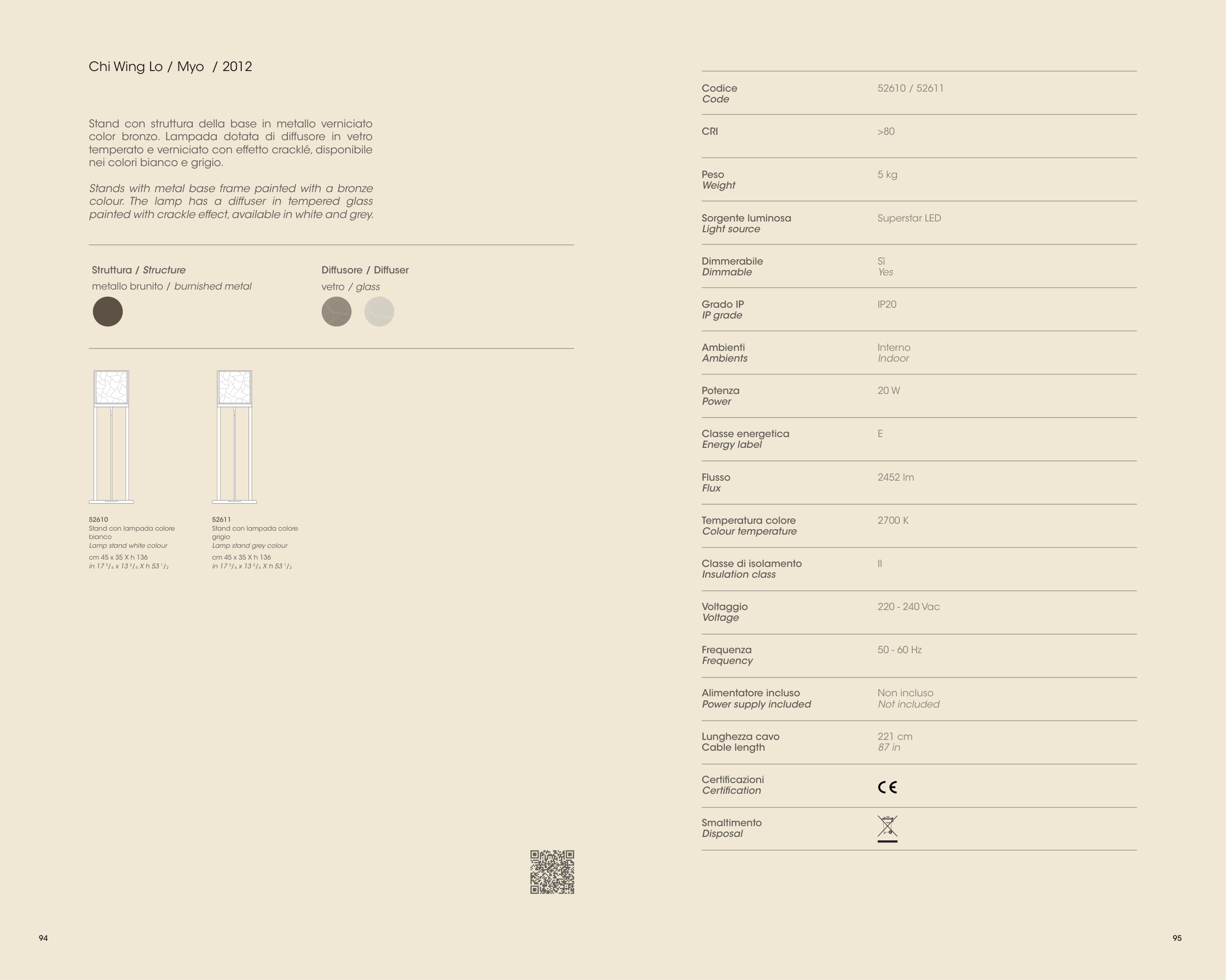 colour. The lamp has a diffuser in tempered glass