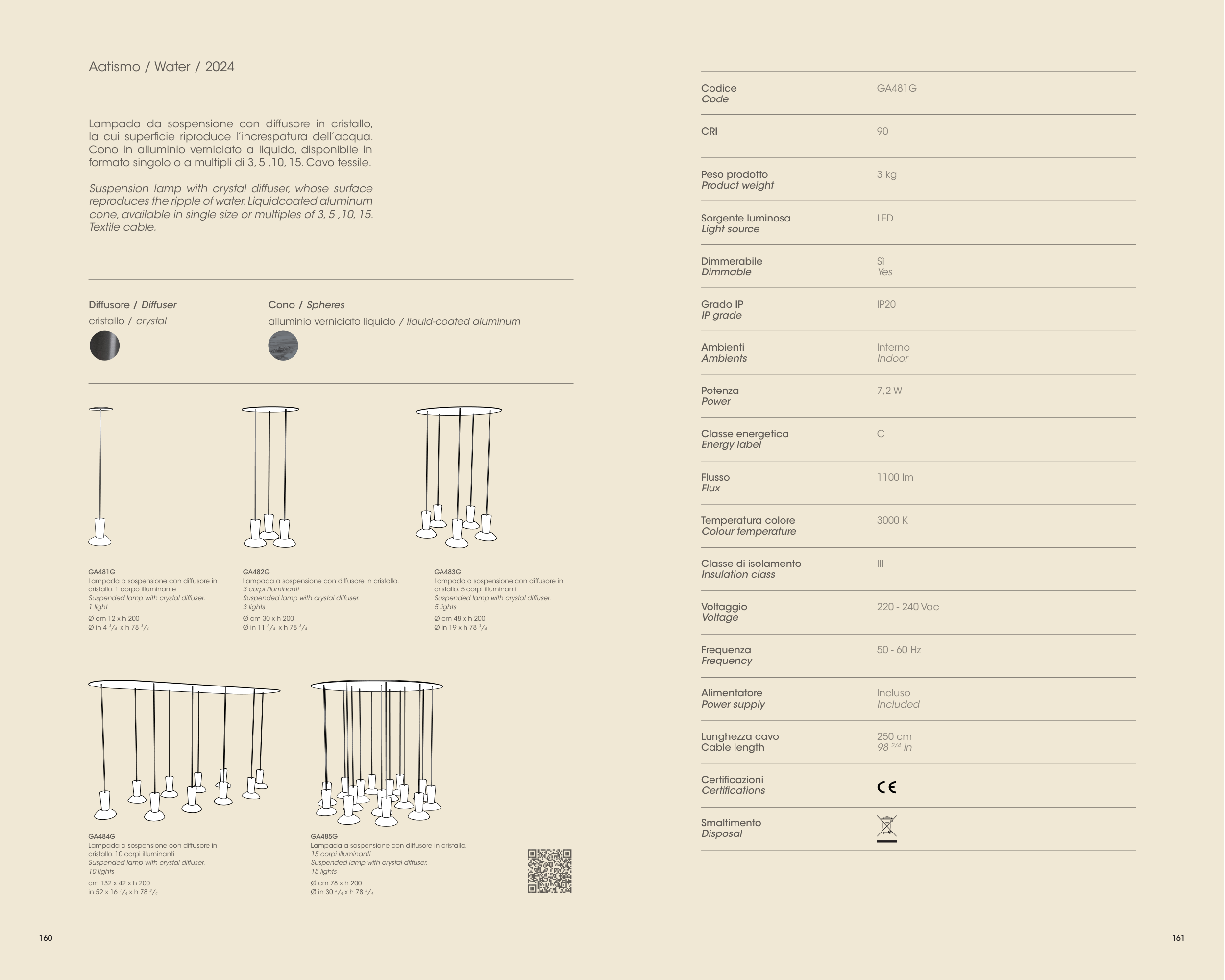 Suspended lamp with crystal diffuser.
