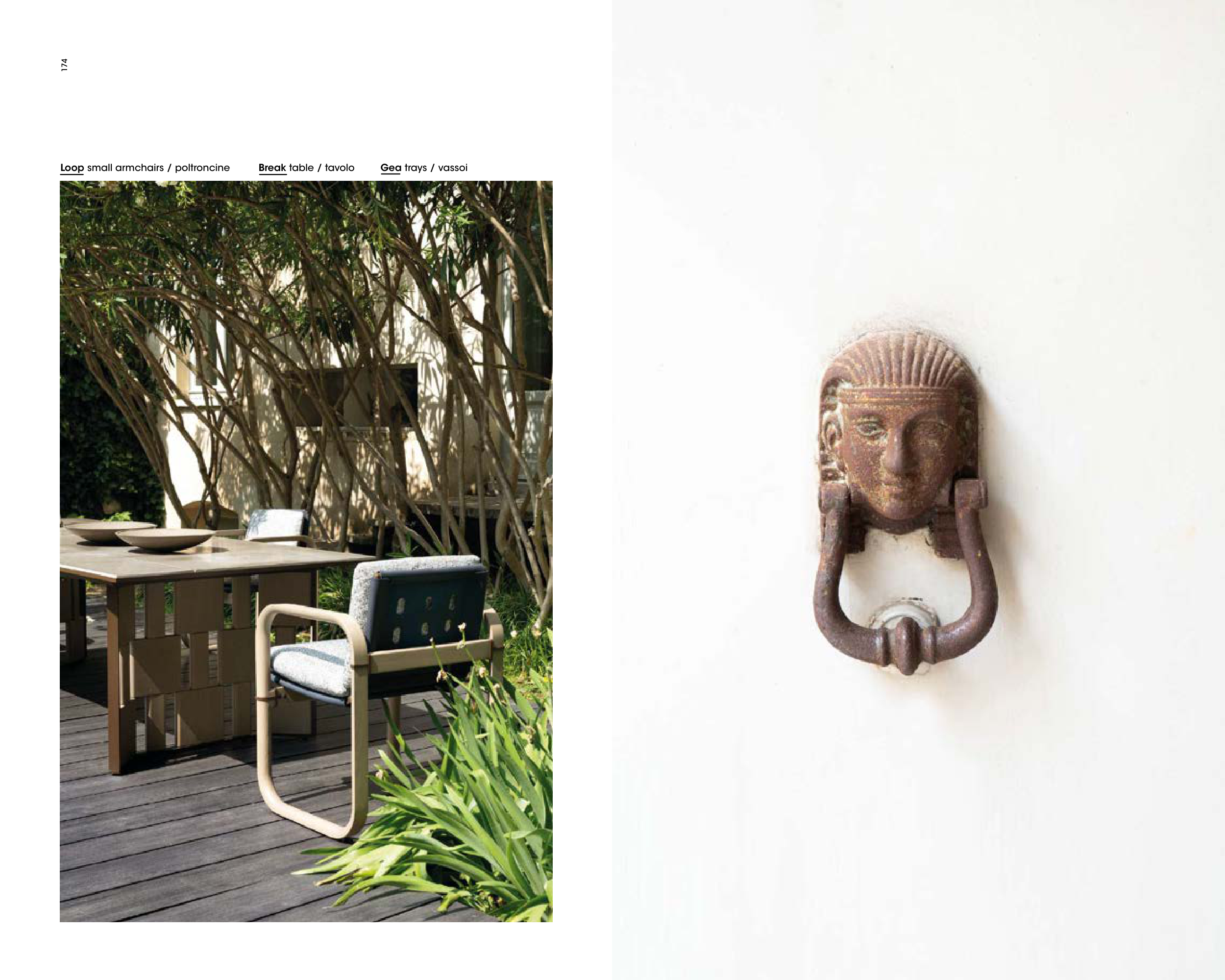 Loop small armchairs / poltroncine Break table / tavolo Gea trays / vassoi