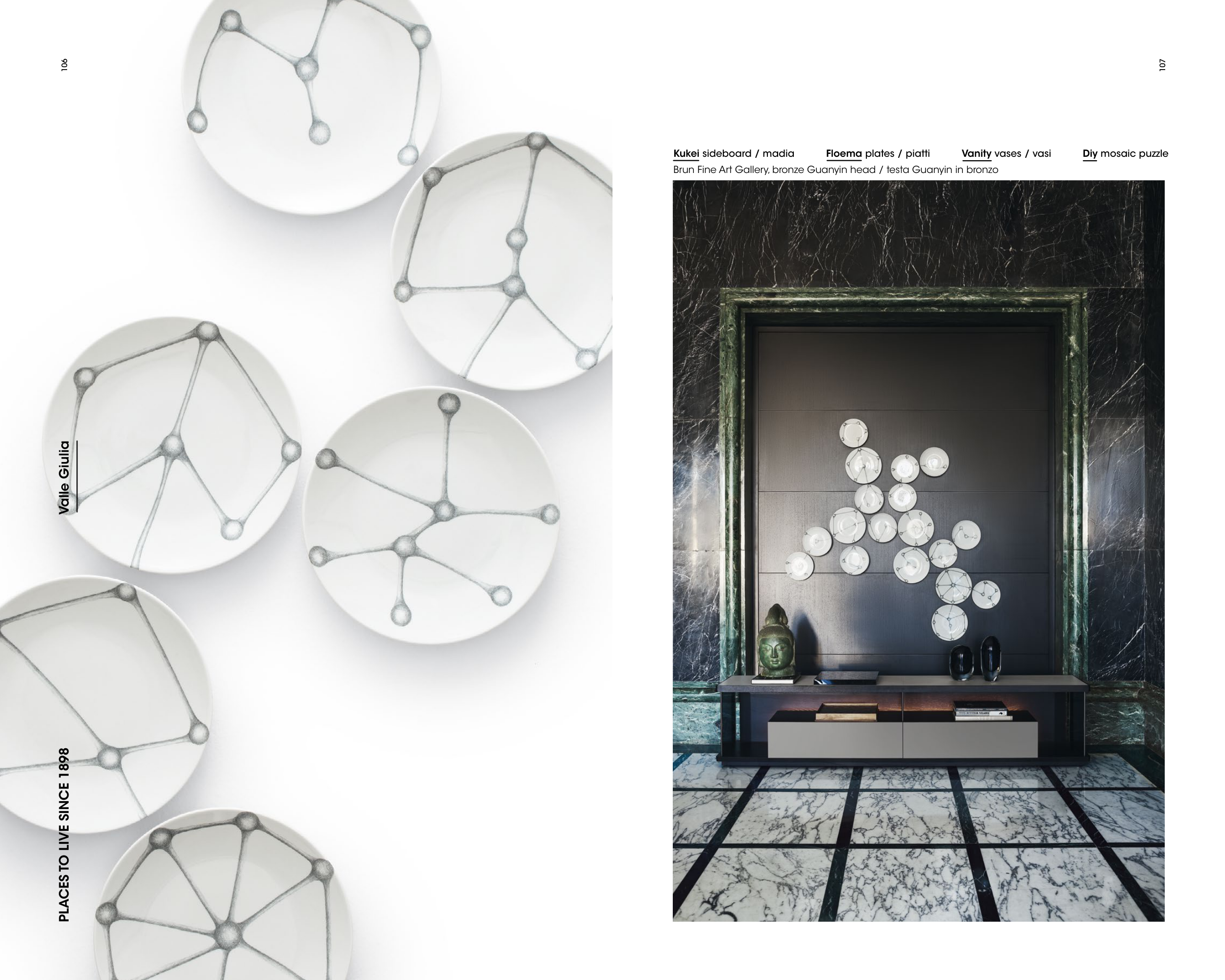Kukei sideboard / madia Floema plates / piatti Vanity vases / vasi Diy mosaic puzzle