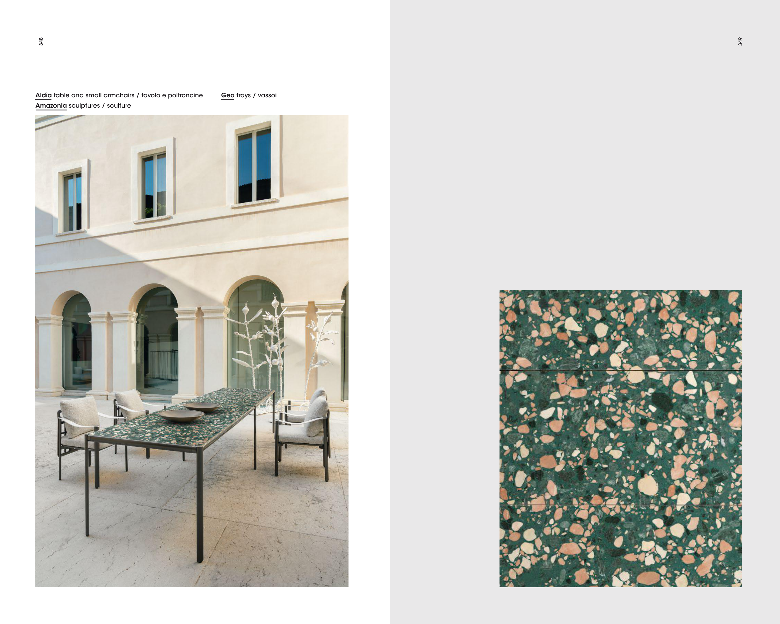 Aldìa table and small armchairs / tavolo e poltroncine Gea trays / vassoi