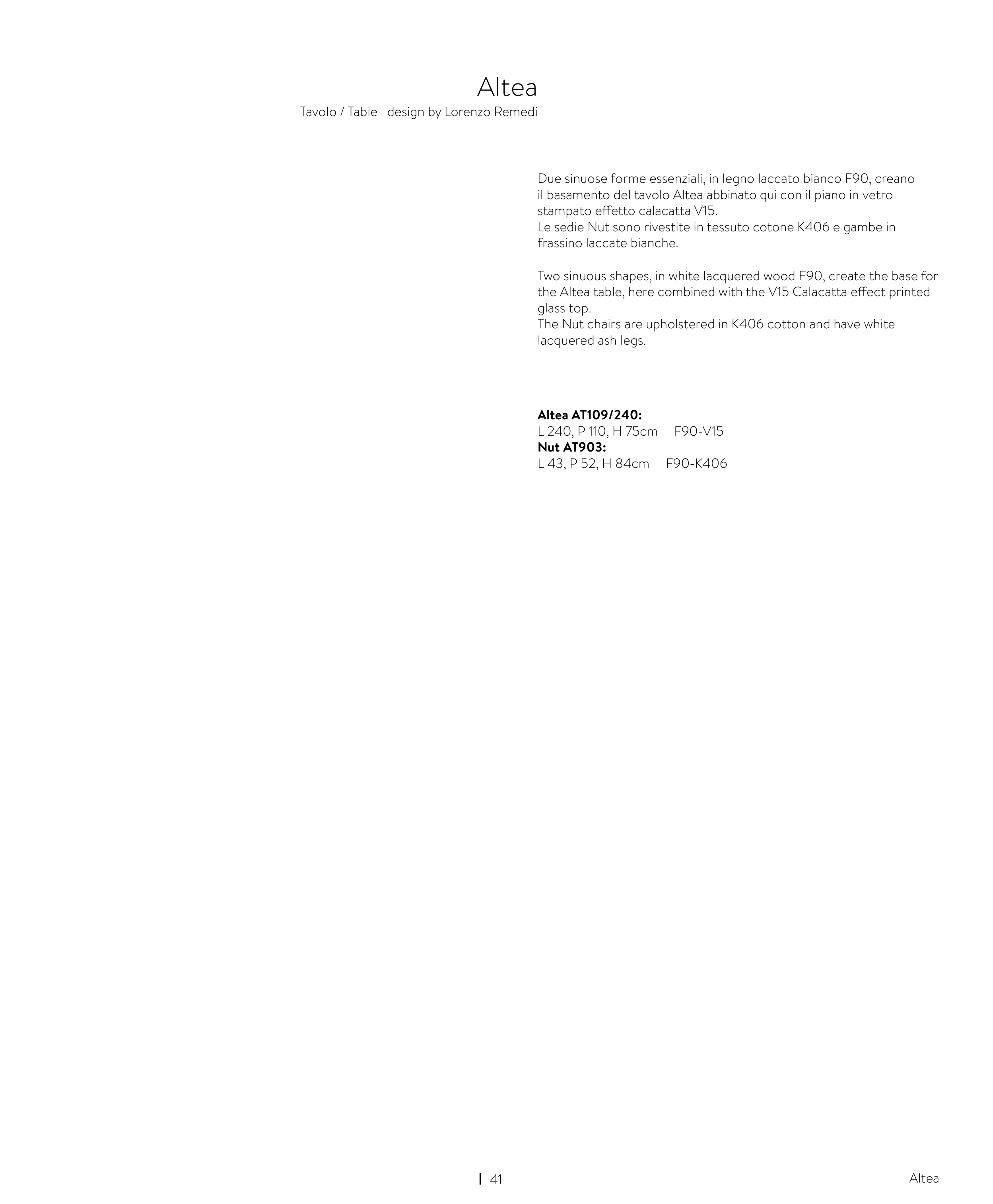 the Altea table, here combined with the V15 Calacatta effect printed