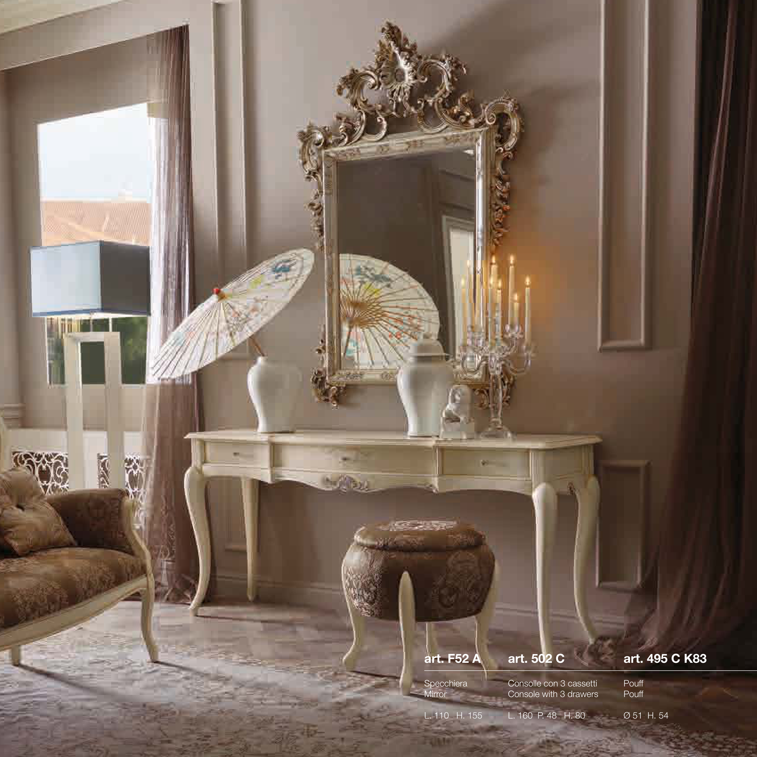 specchiera. Completano l’ambiente la consolle a tre