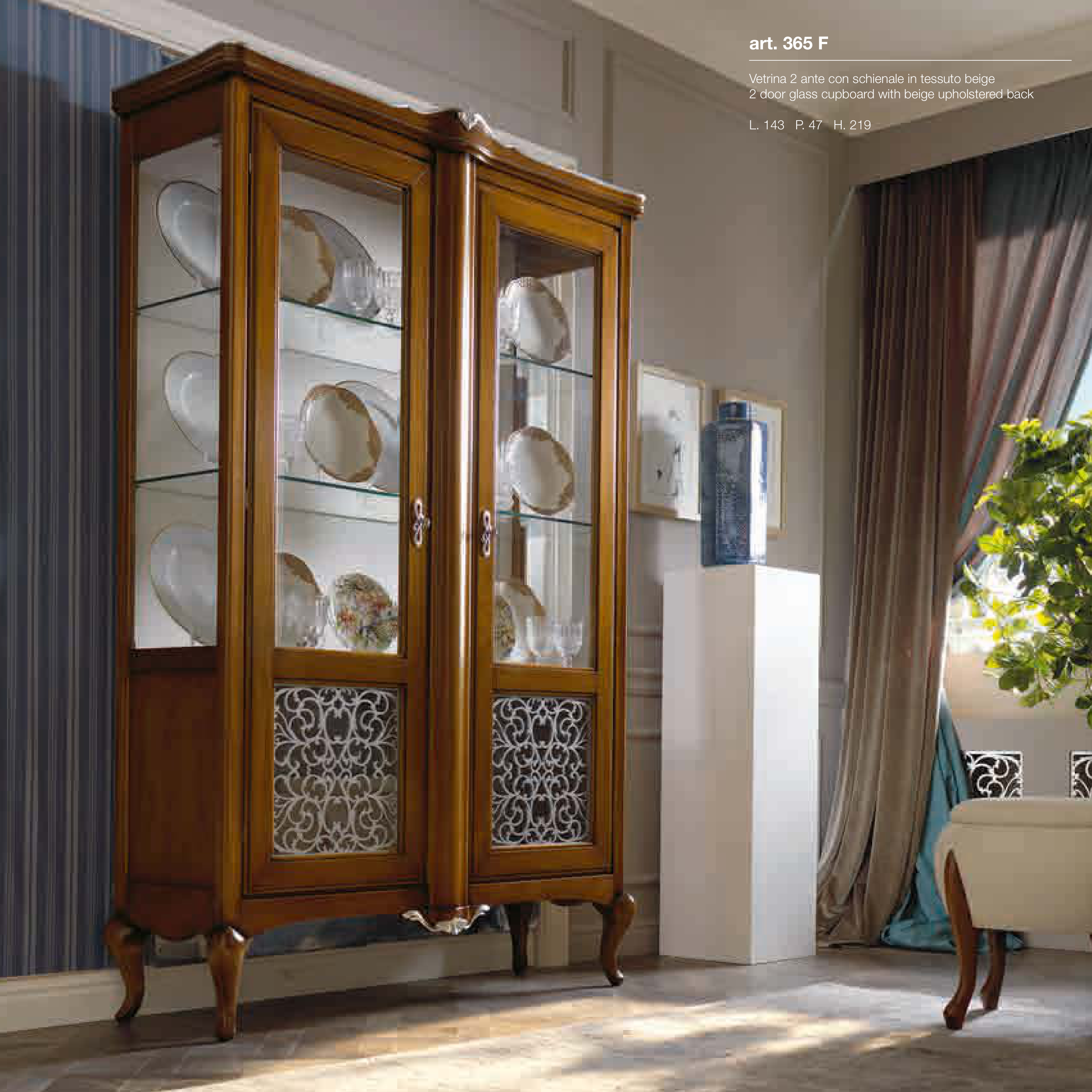 Vetrina 2 ante con schienale in tessuto beige
