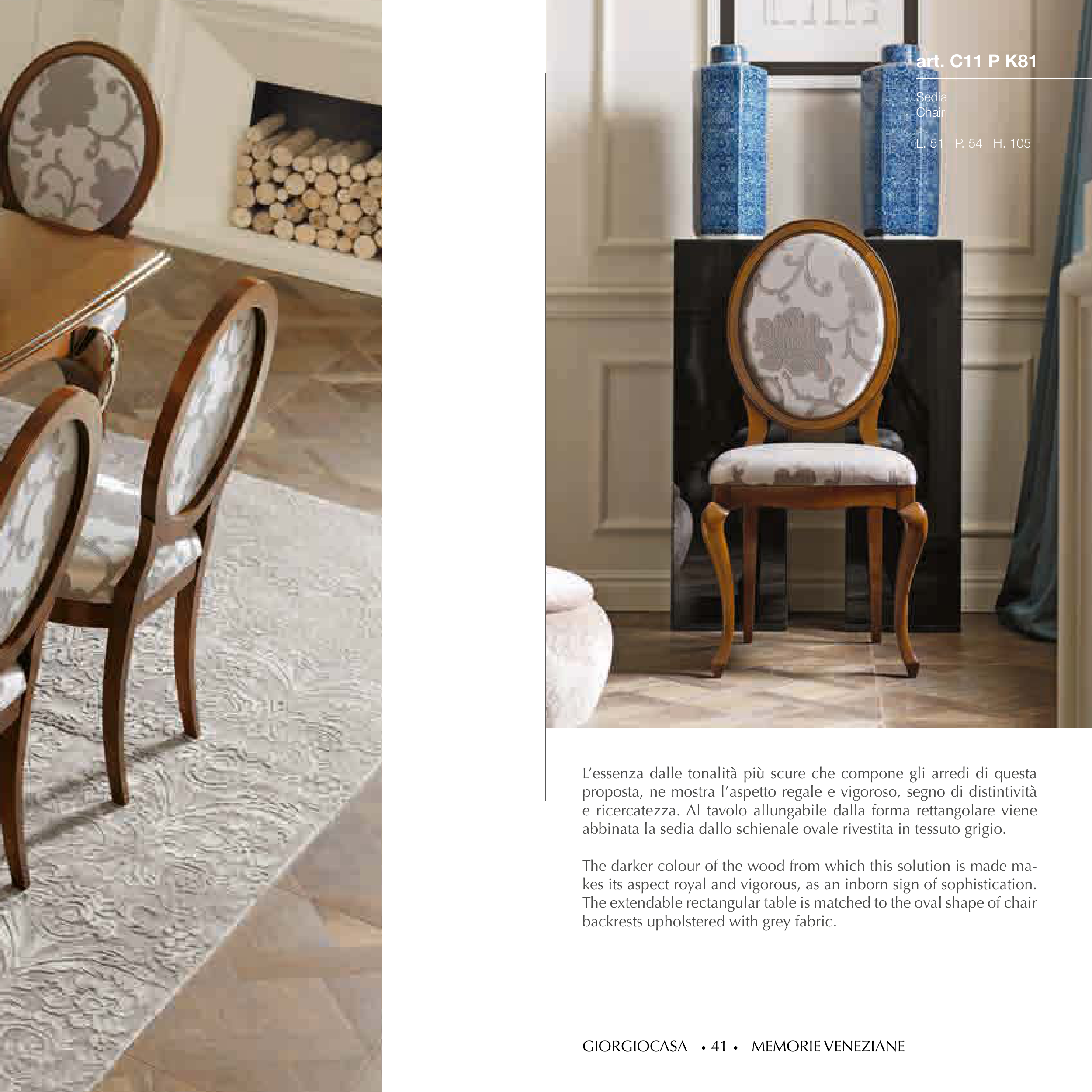 The extendable rectangular table is matched to the oval shape of chair