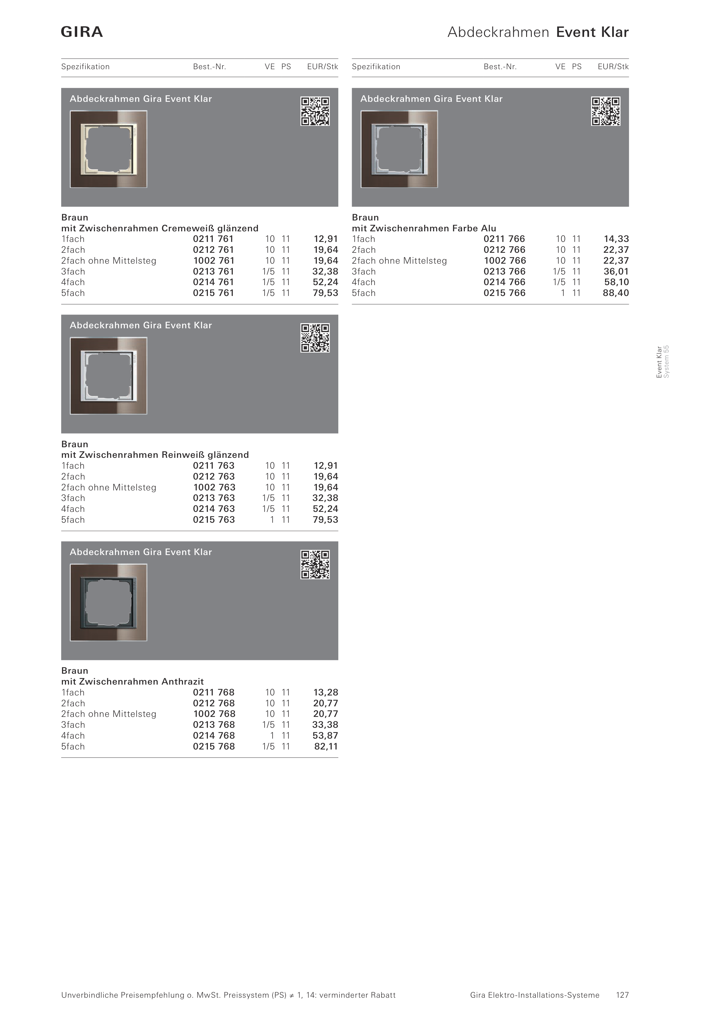 Abdeckrahmen Gira Event Klar
