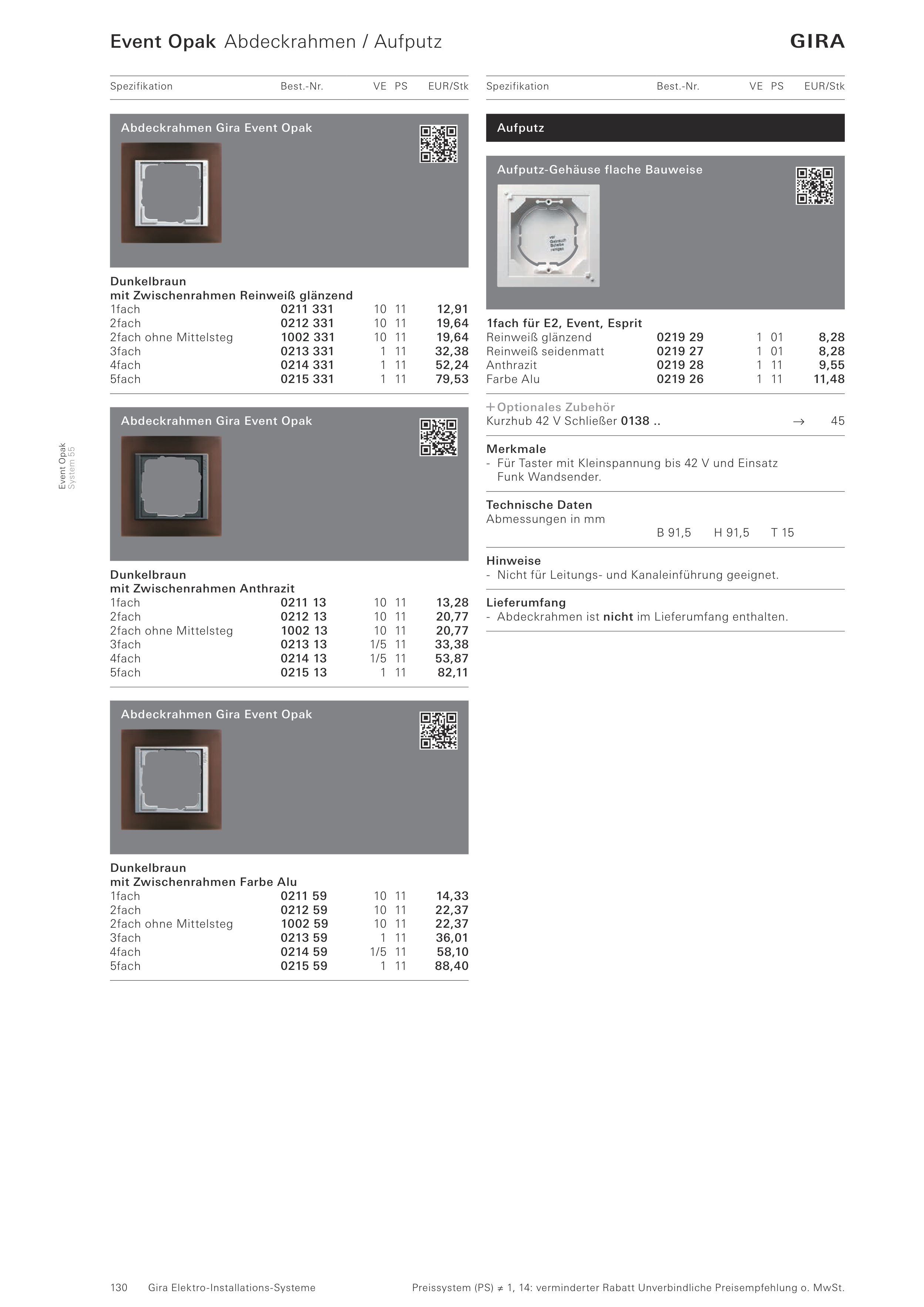 Event Opak Abdeckrahmen / Aufputz