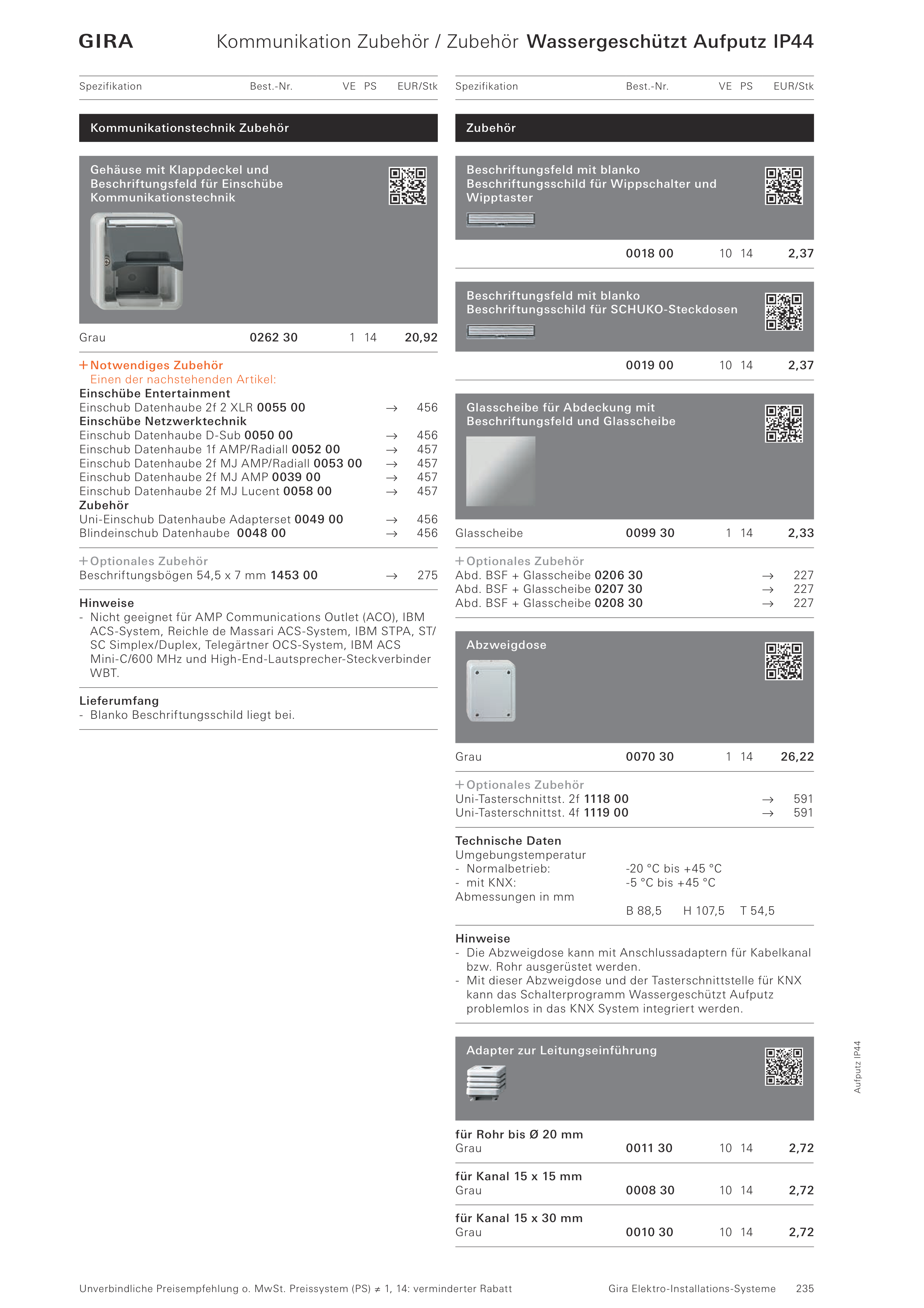Kommunikation Zubehör / Zubehör Wassergeschützt Aufputz IP44