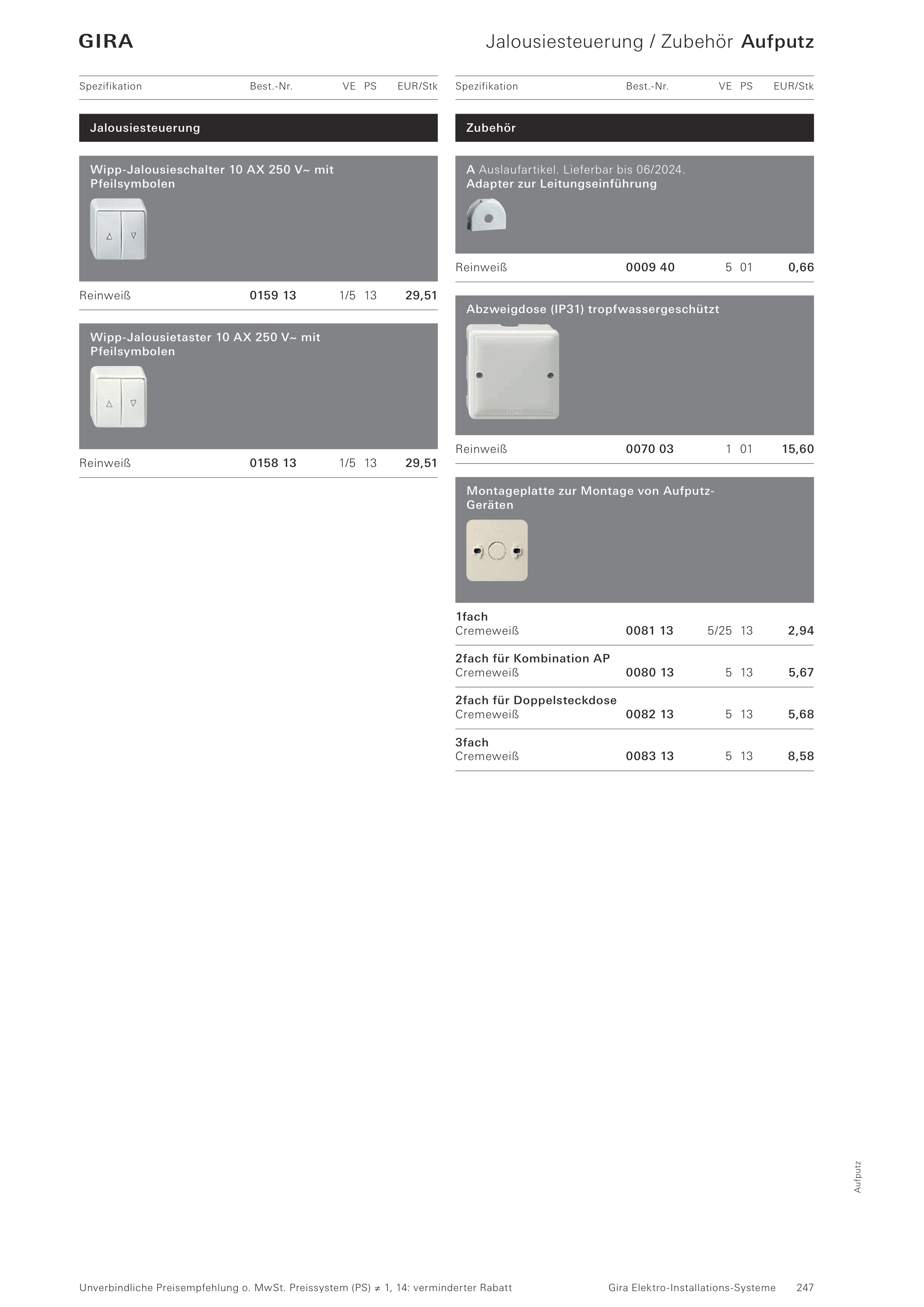 Jalousiesteuerung / Zubehör Aufputz