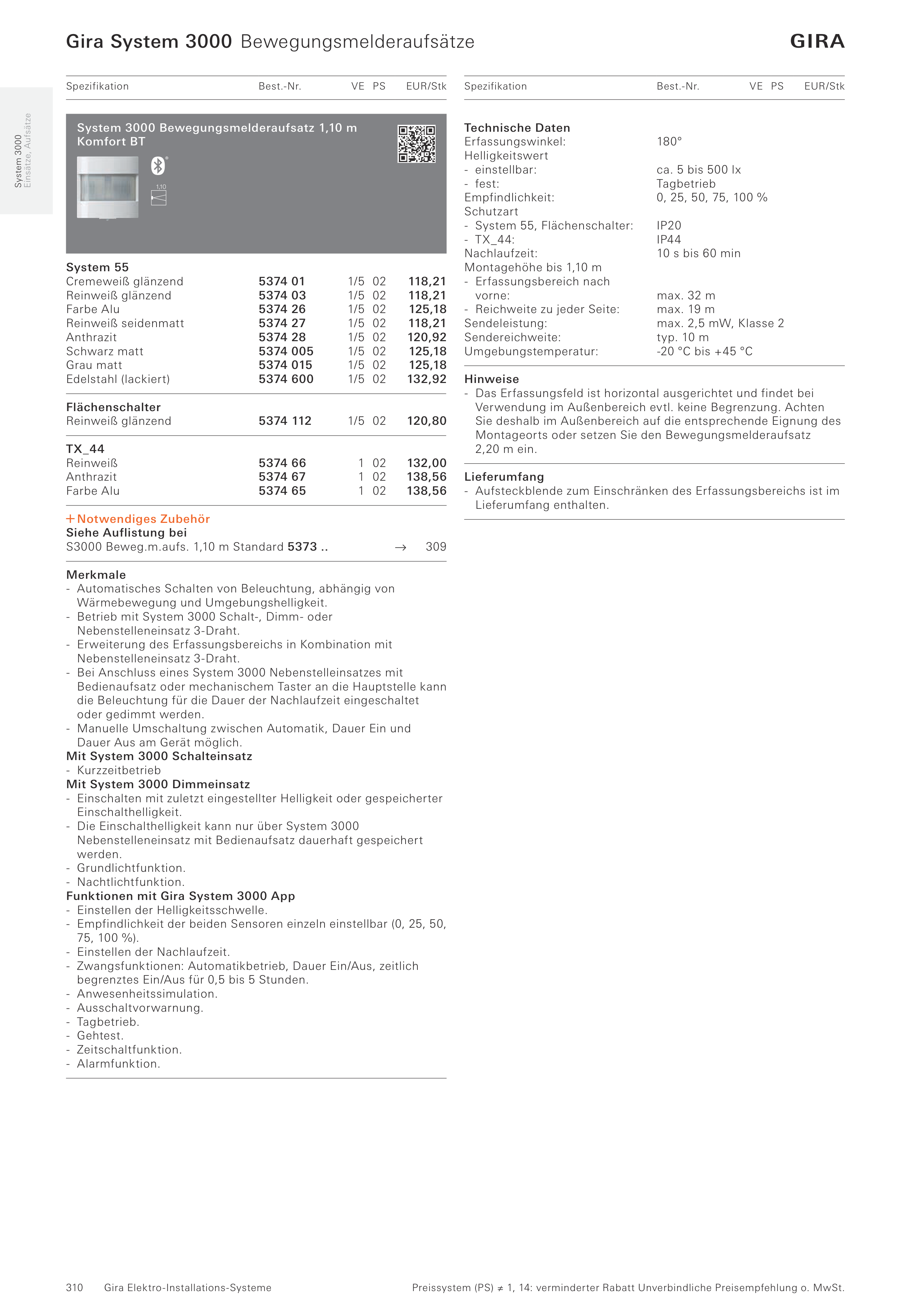 Gira System 3000 Bewegungsmelderaufsätze