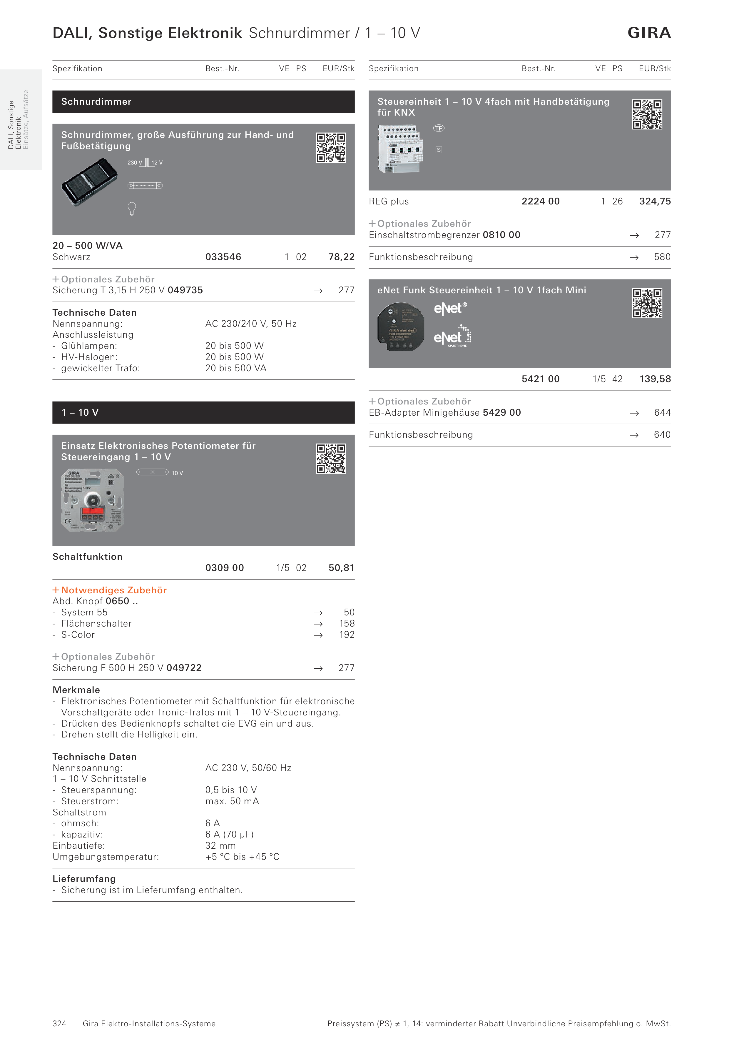 DALI, Sonstige Elektronik Schnurdimmer / 1 – 10 V