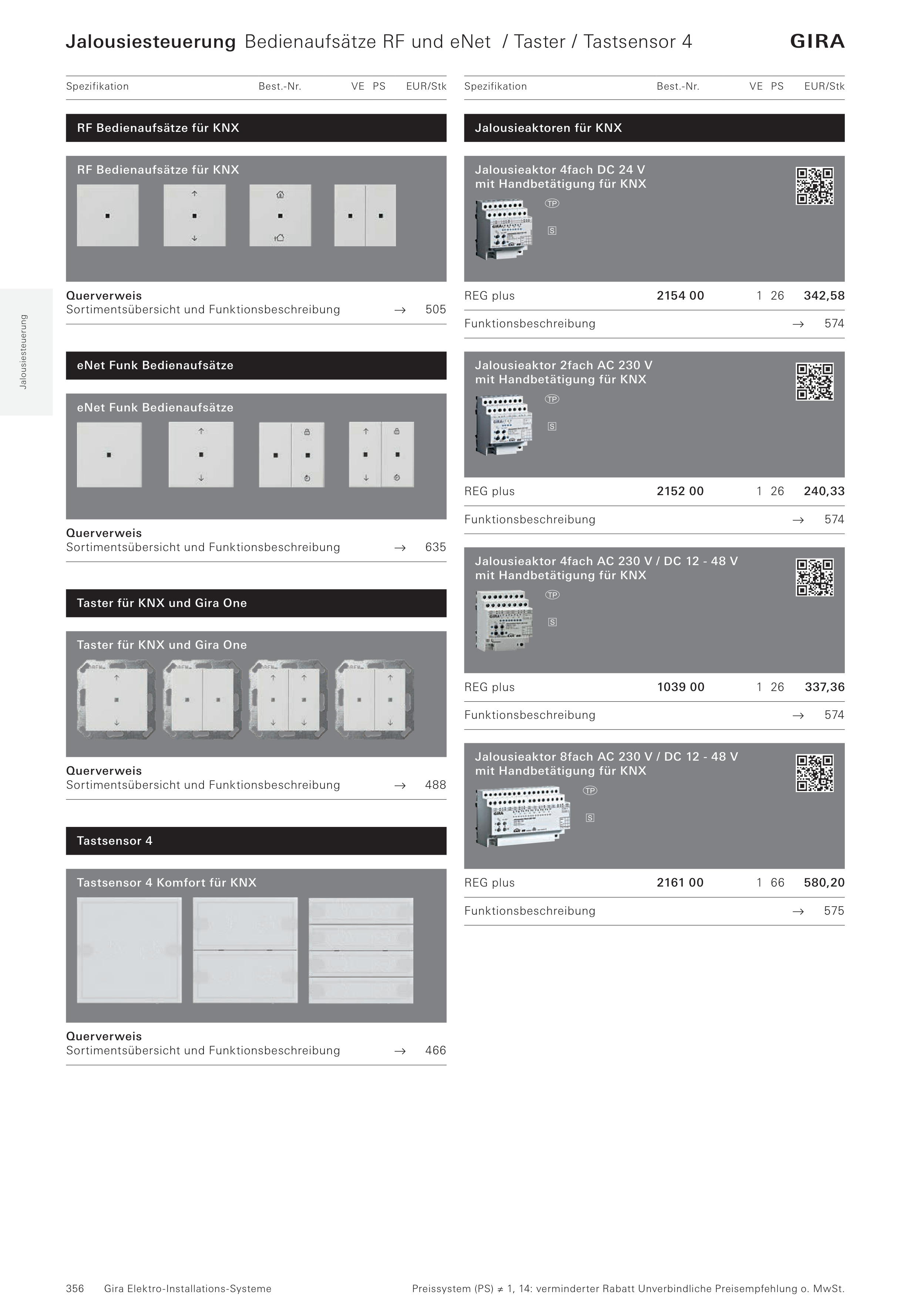 Jalousiesteuerung Bedienaufsätze RF und eNet / Taster / Tastsensor 4